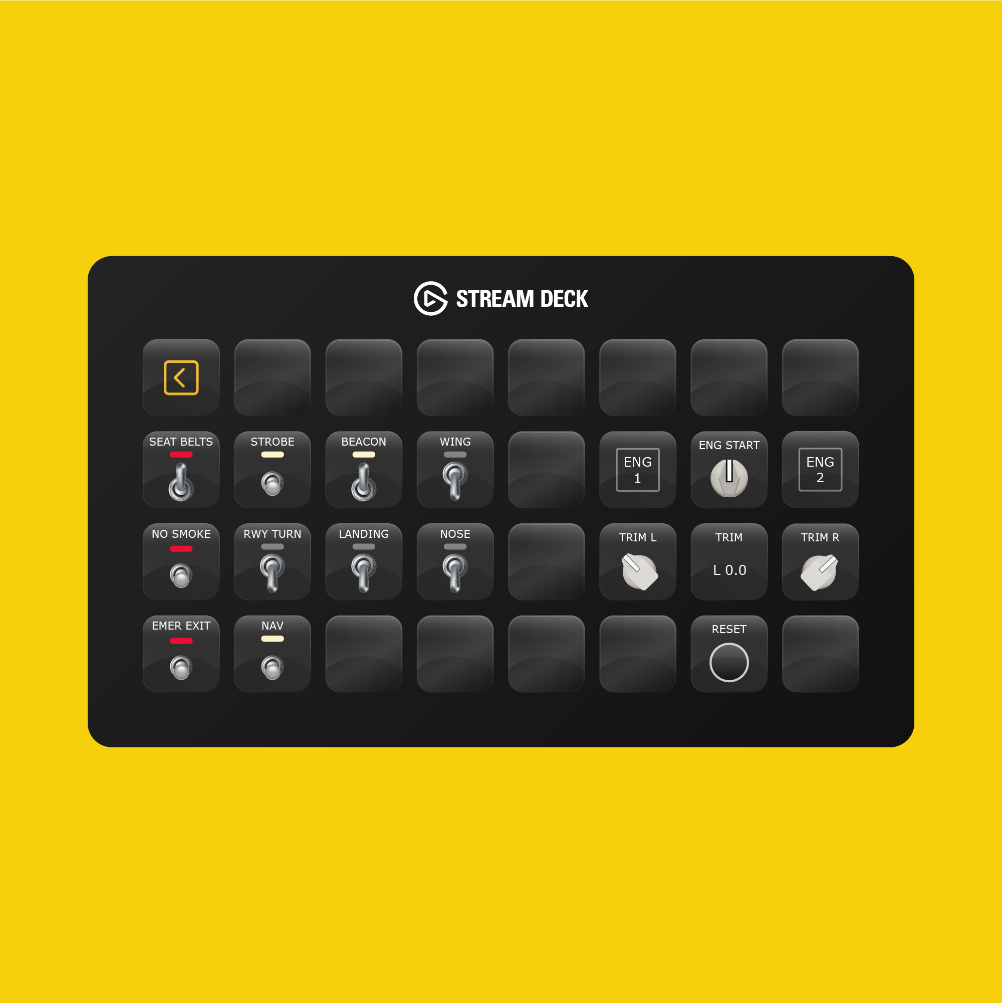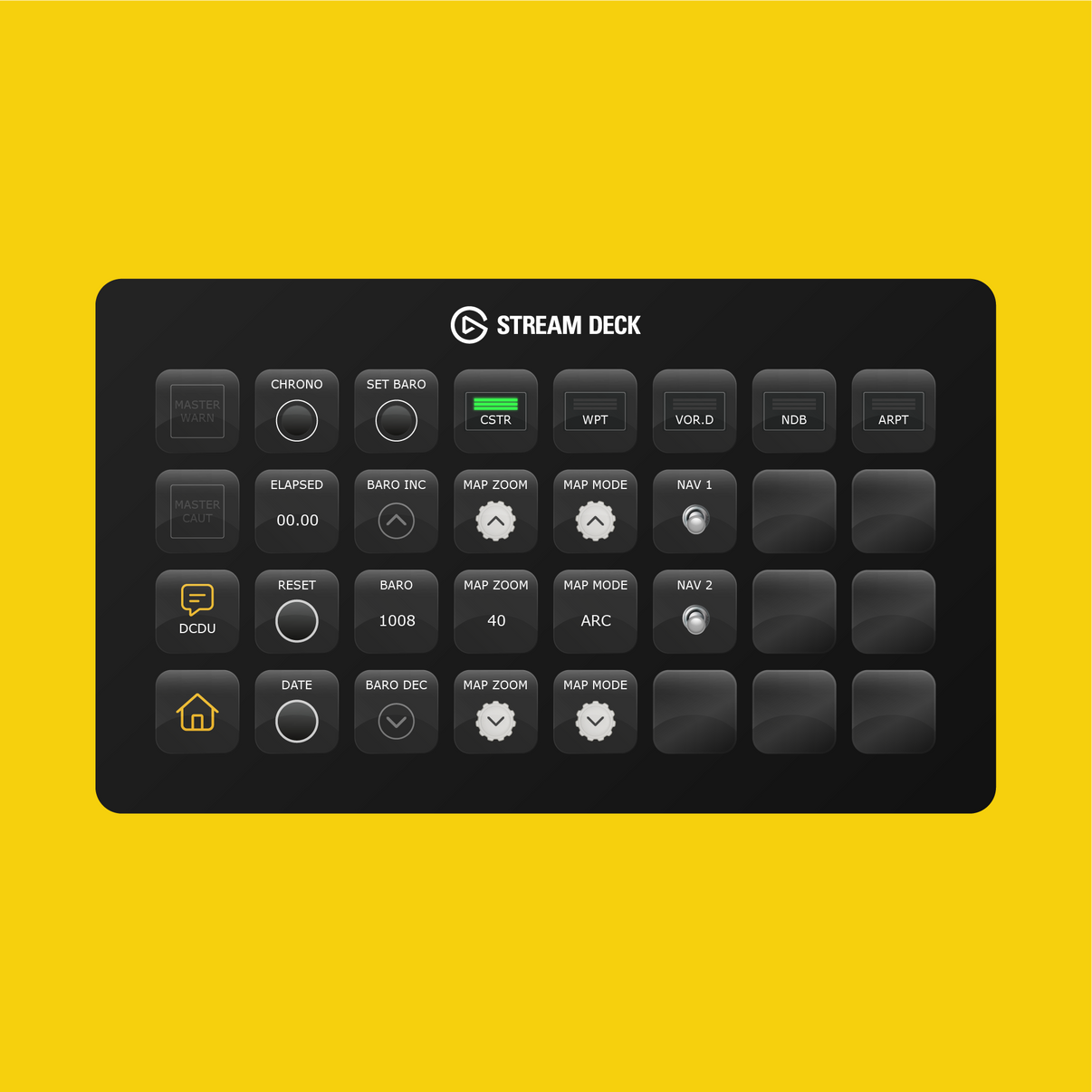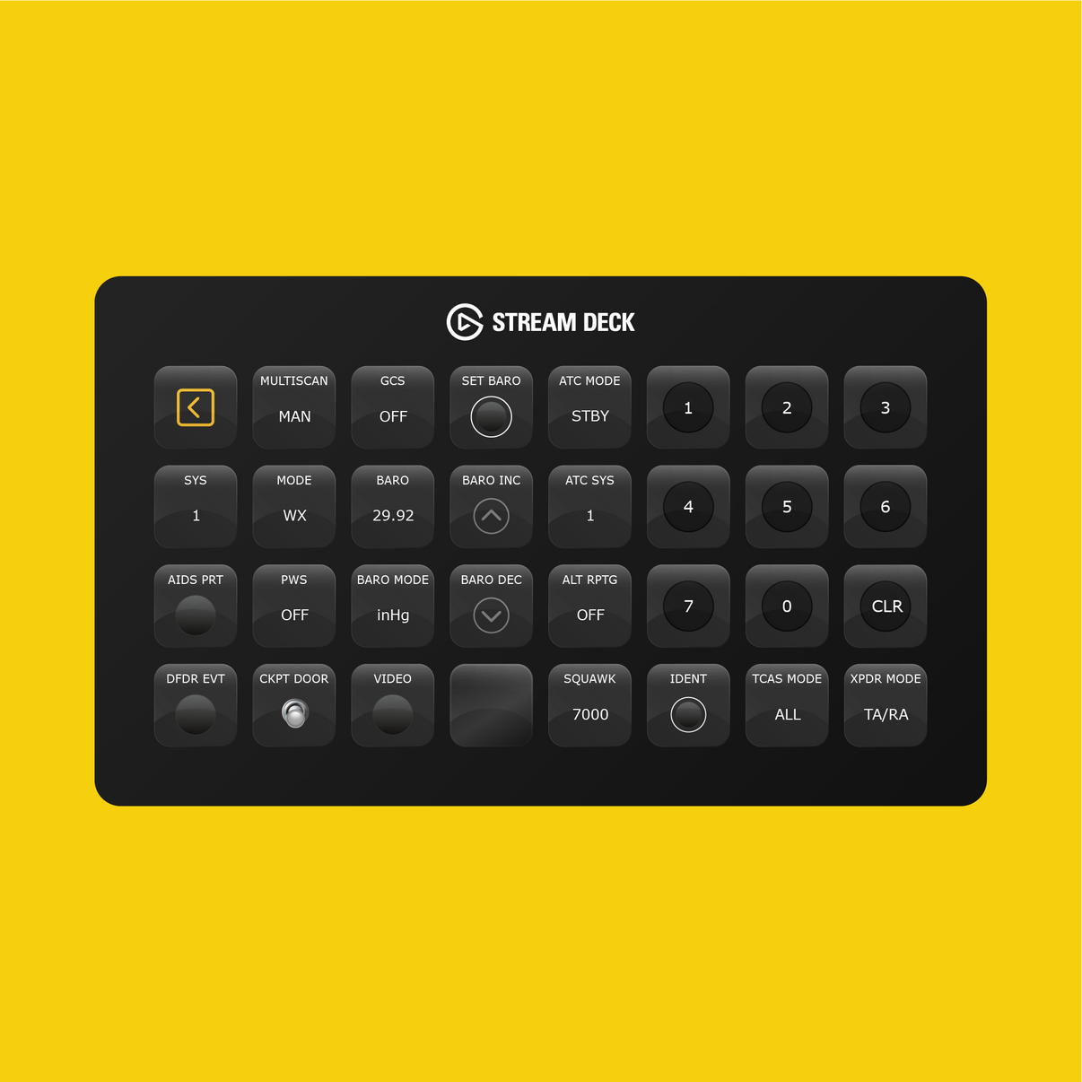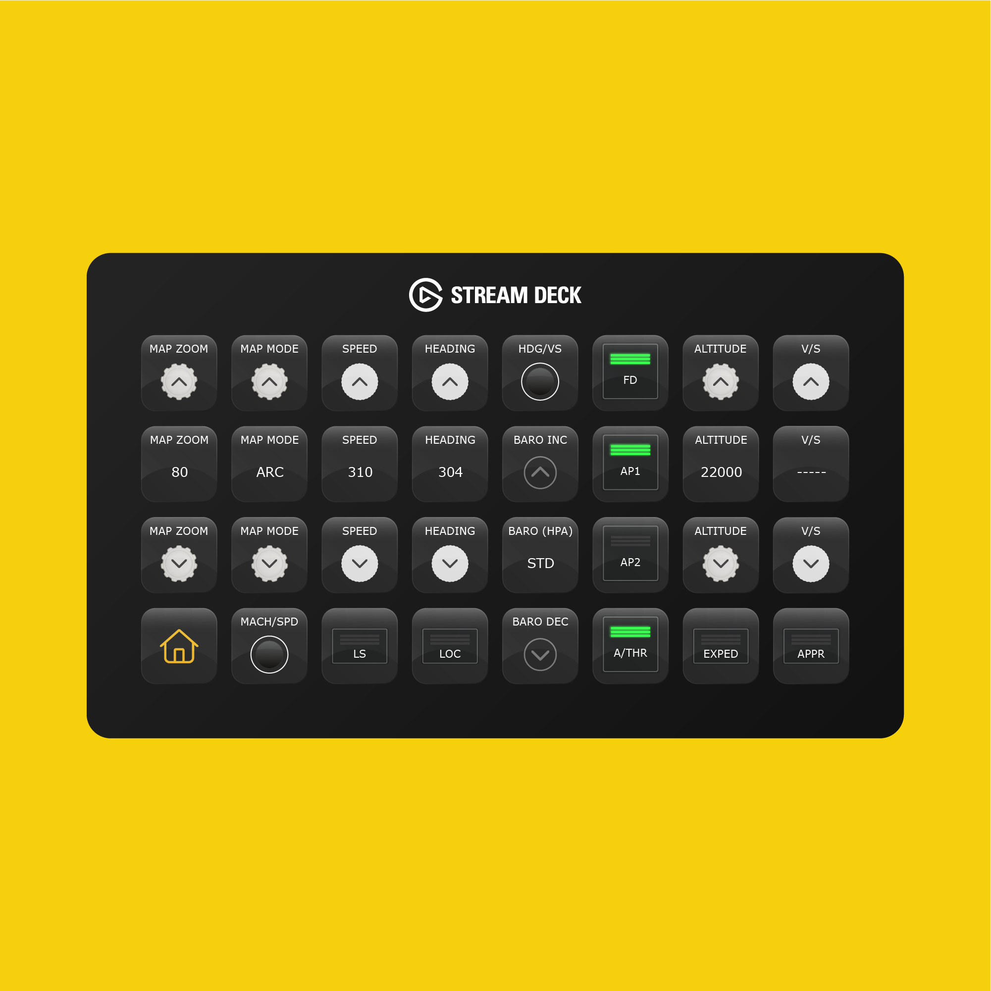 This profile is compatible with Microsoft Flight Simulator 2020 and Flight Simulator 2024. The following Elgato Stream Deck devices (not included) are supported: Stream Deck XL, Stream Deck MK.2, Stream Deck Mobile, and Xeneon Edge.