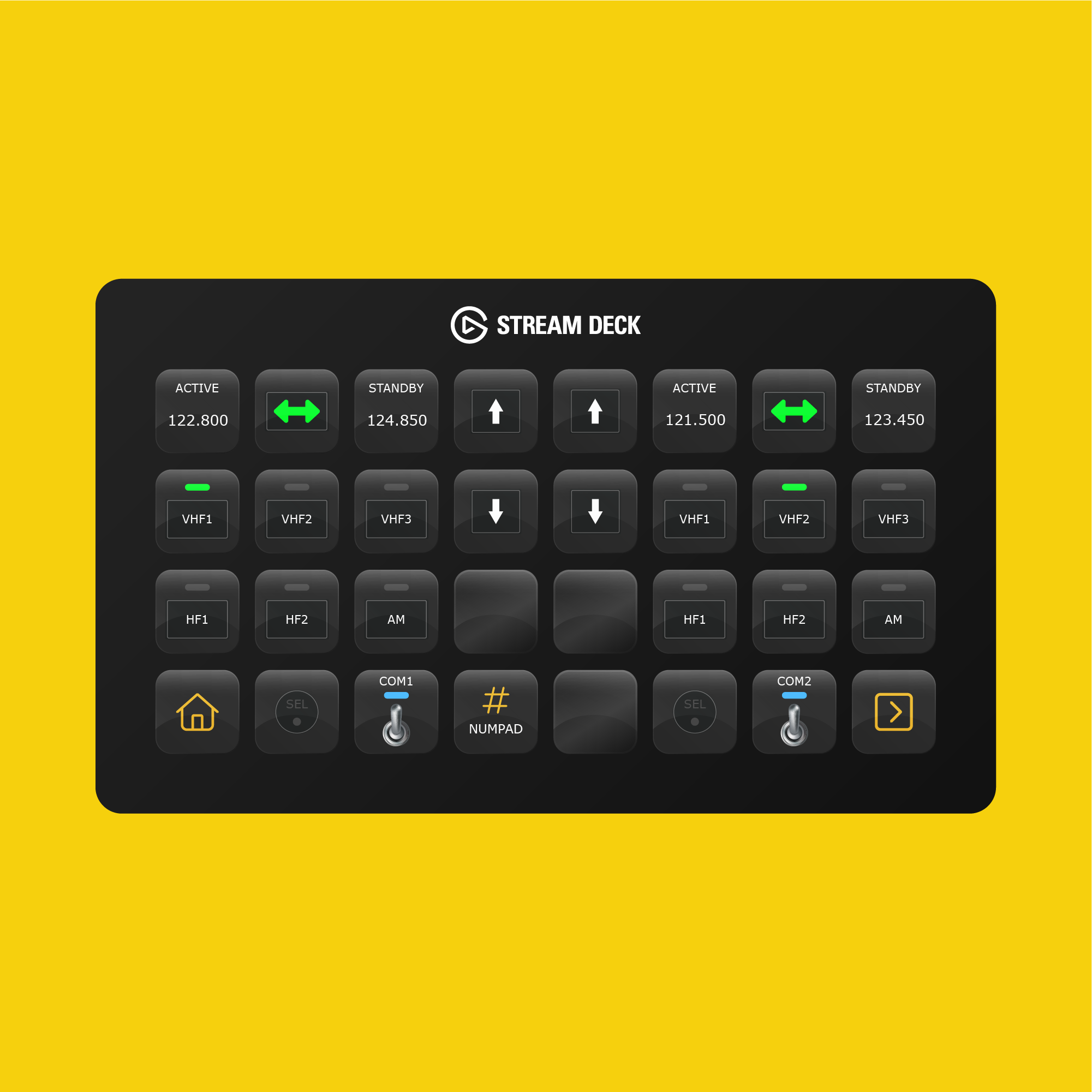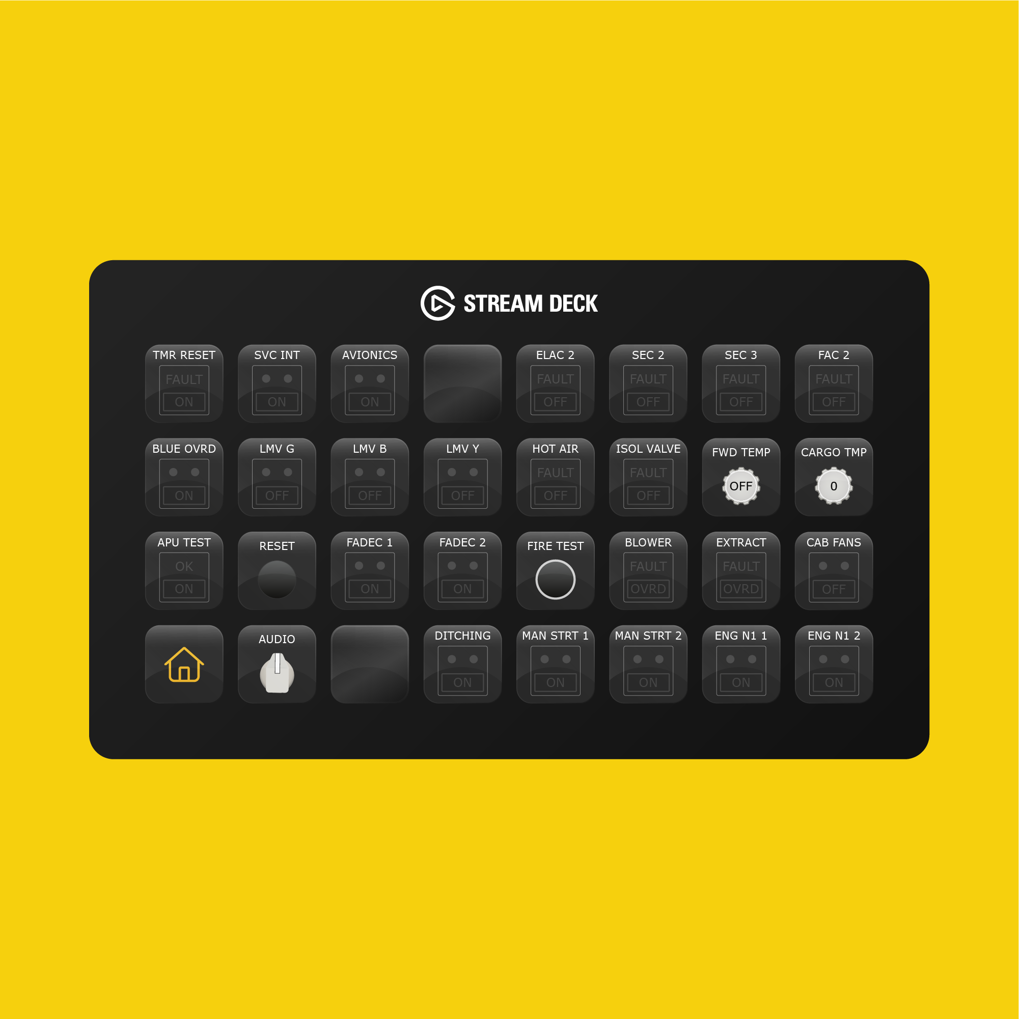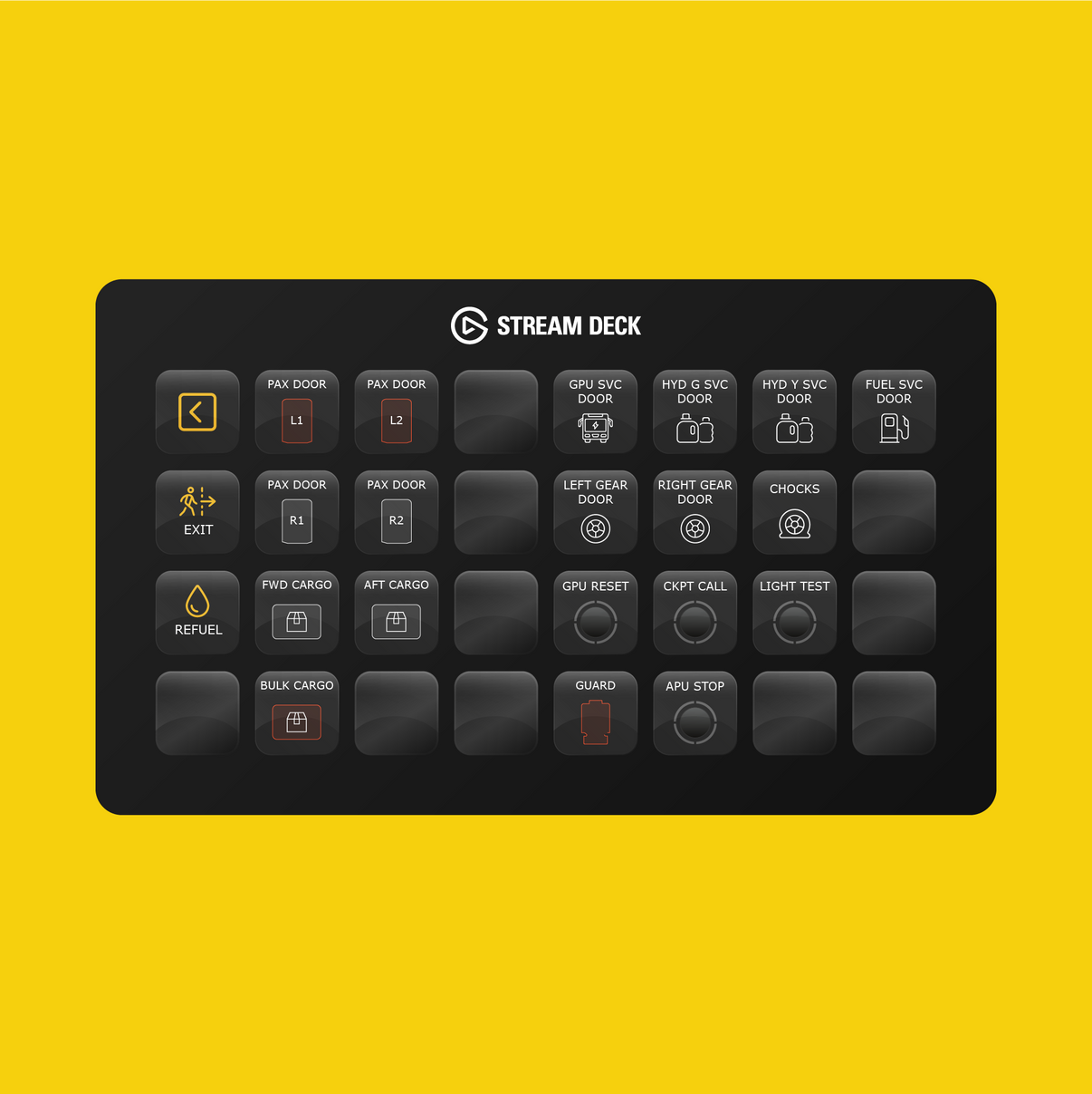 This profile is compatible with Microsoft Flight Simulator 2020 and Flight Simulator 2024. The following Elgato Stream Deck devices (not included) are supported: Stream Deck XL, Stream Deck MK.2, Stream Deck Mobile, and Xeneon Edge.