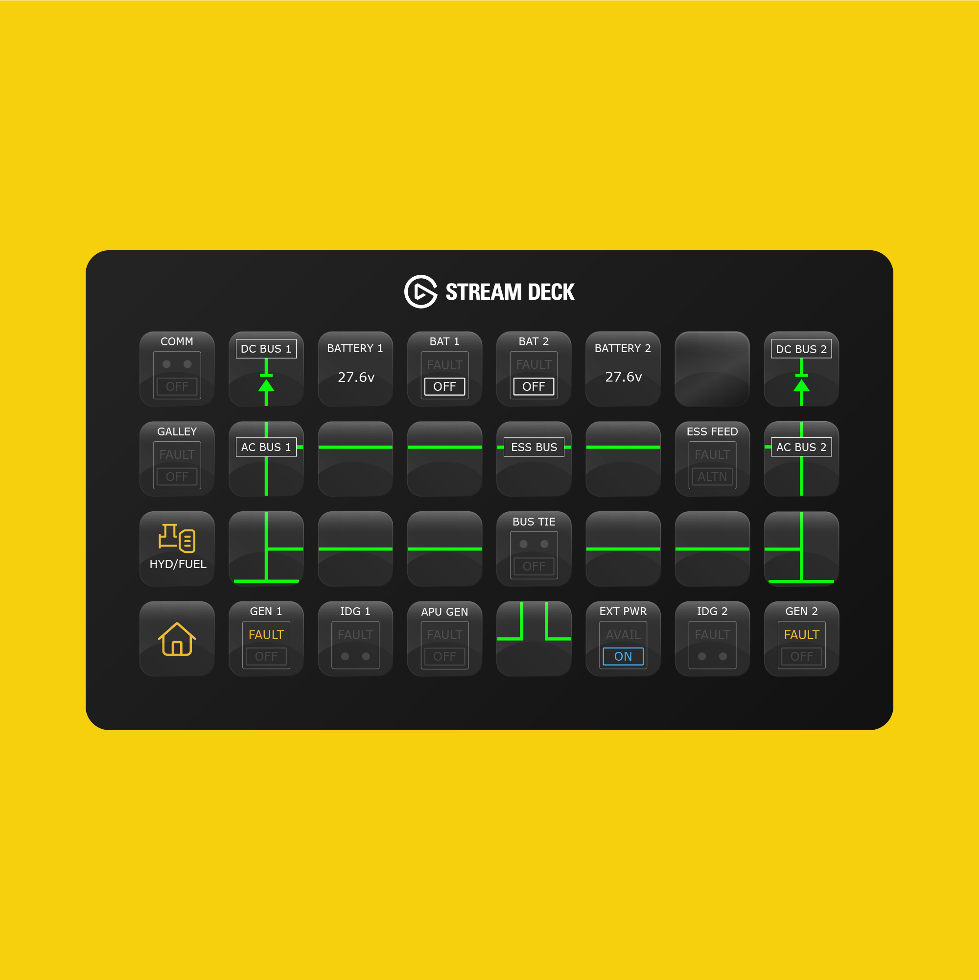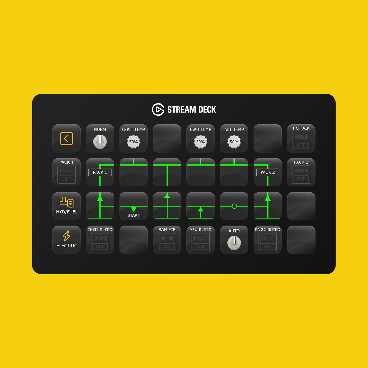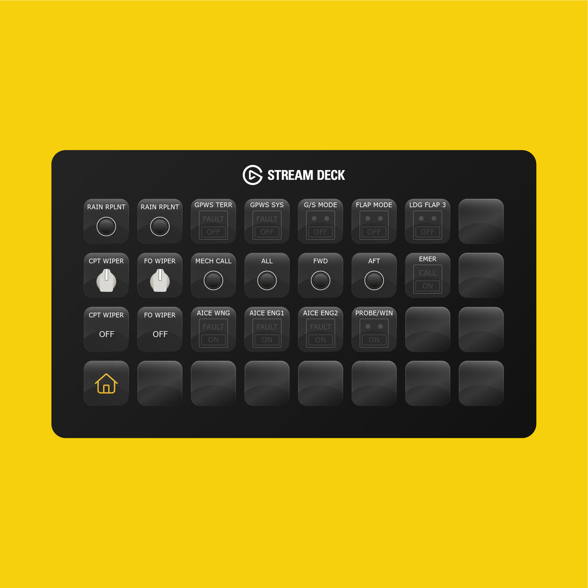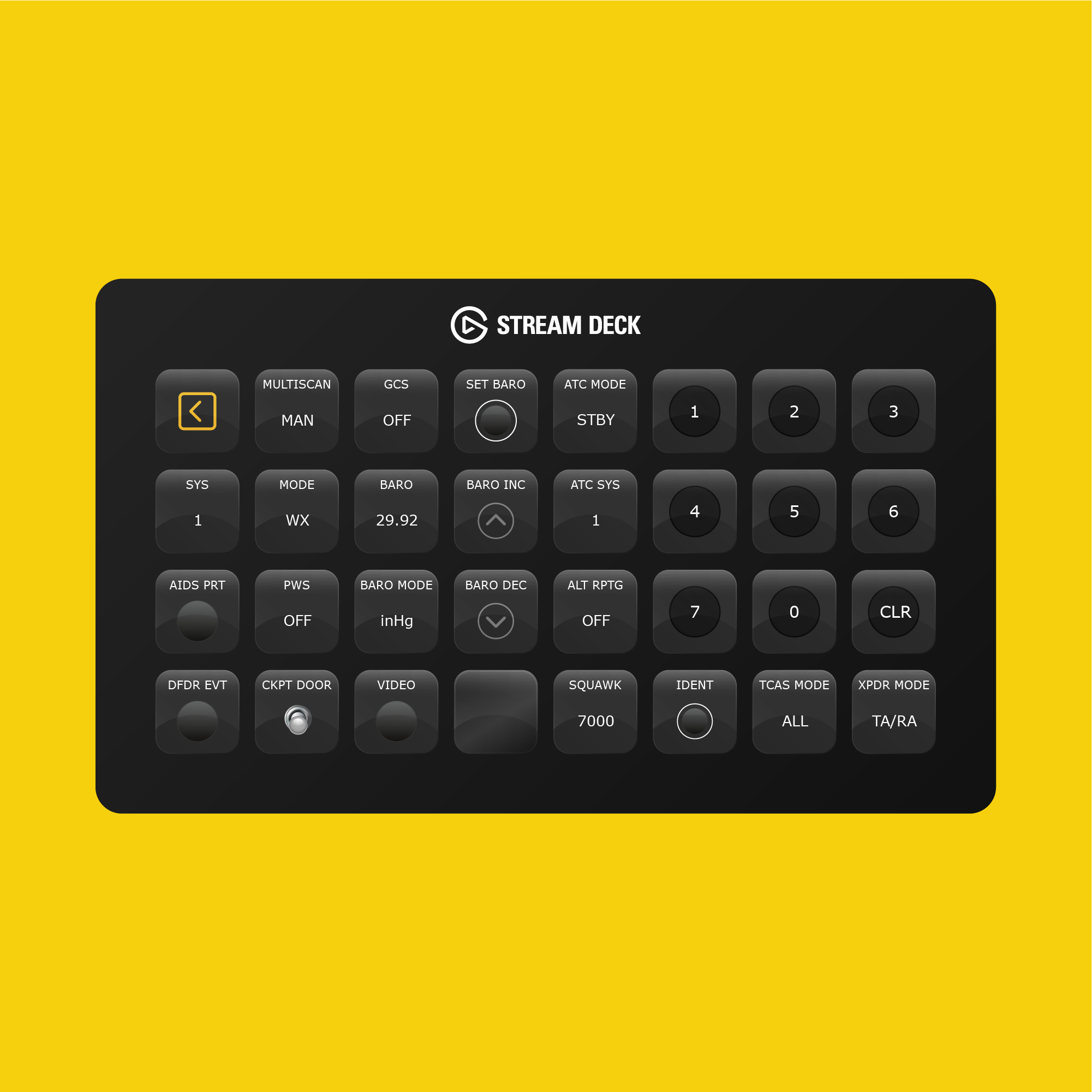 This profile is compatible with Microsoft Flight Simulator 2020 and Flight Simulator 2024. The following Elgato Stream Deck devices (not included) are supported: Stream Deck XL, Stream Deck MK.2, Stream Deck Mobile, and Xeneon Edge.