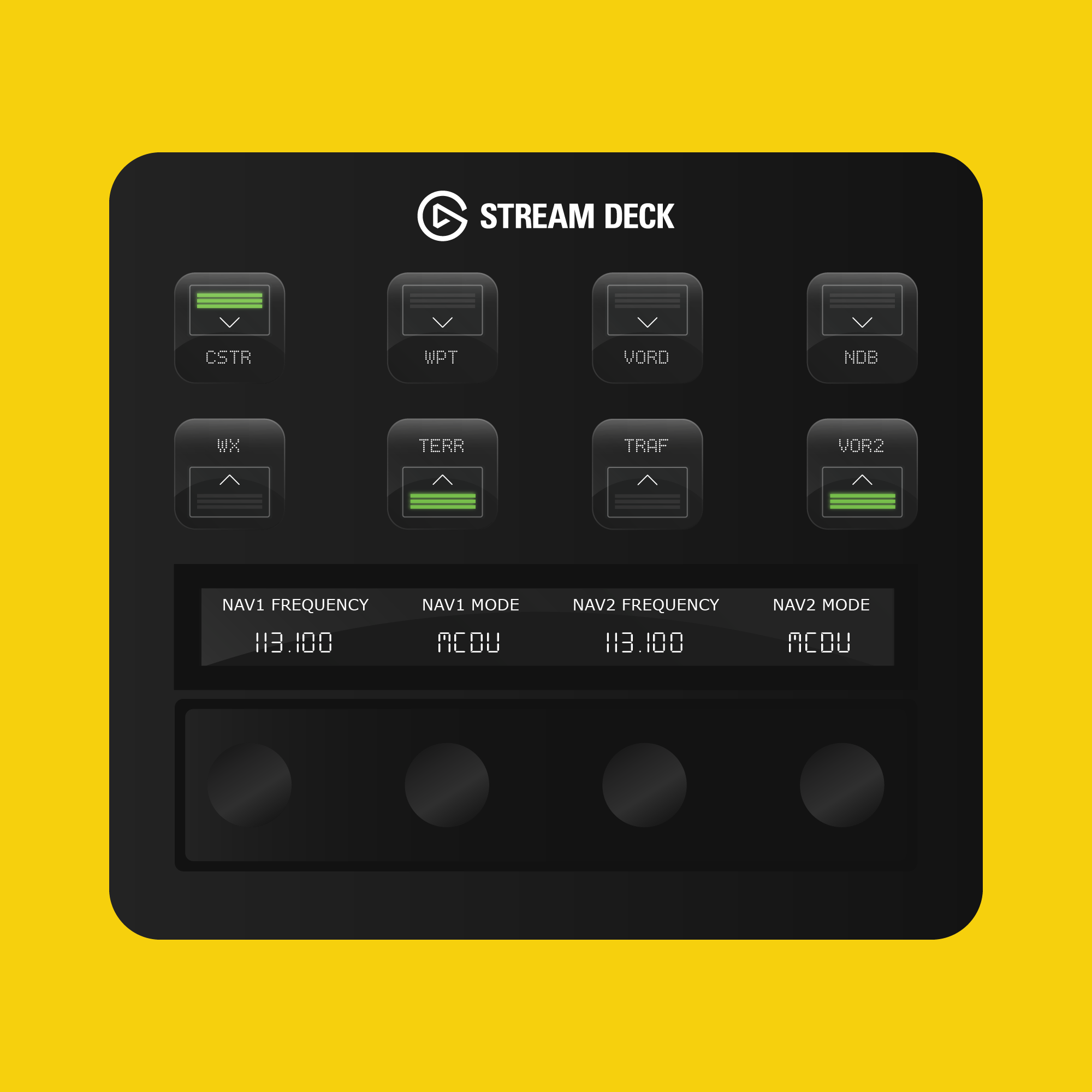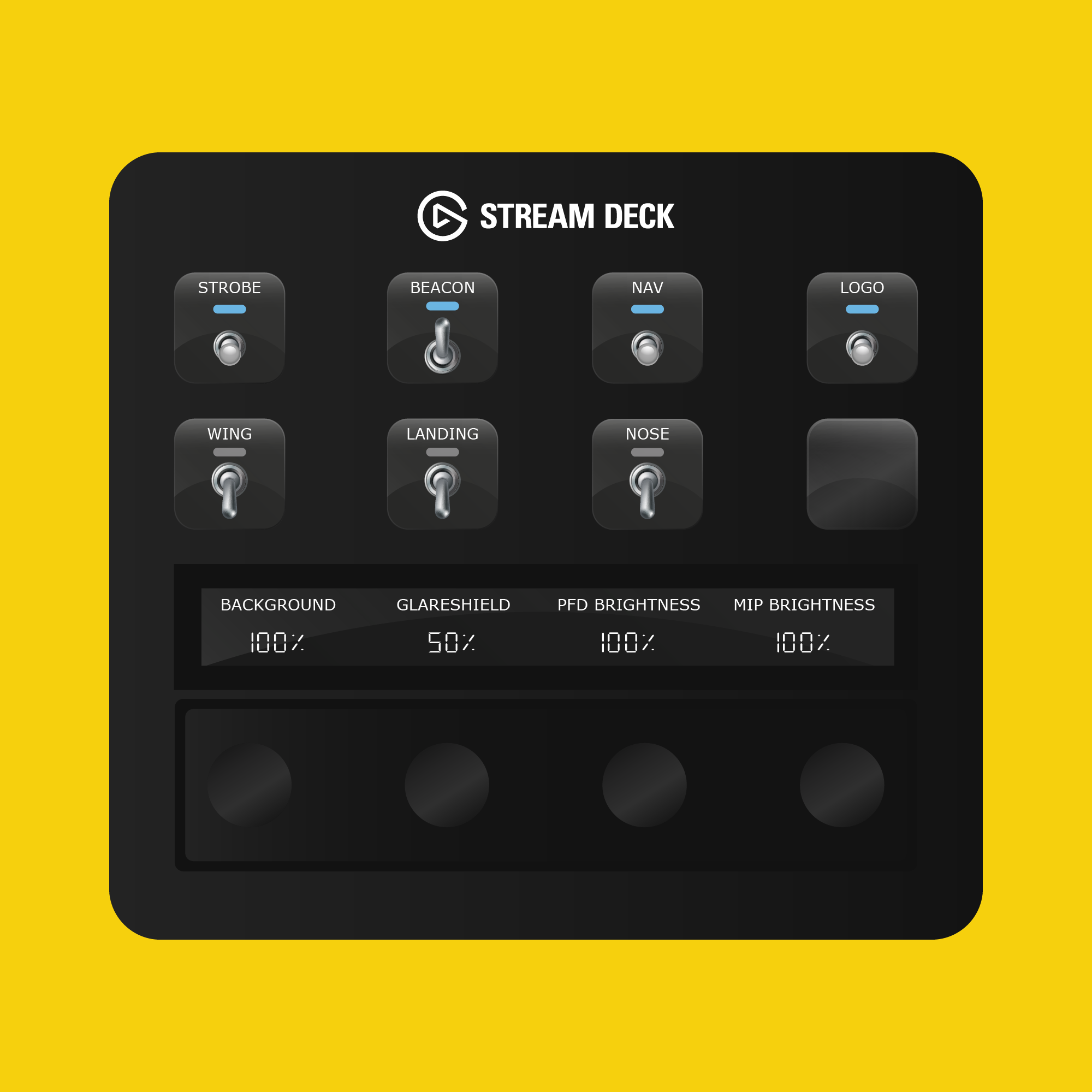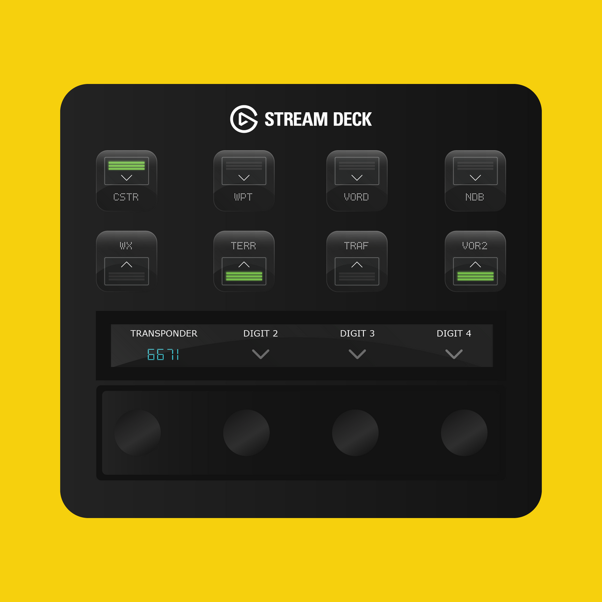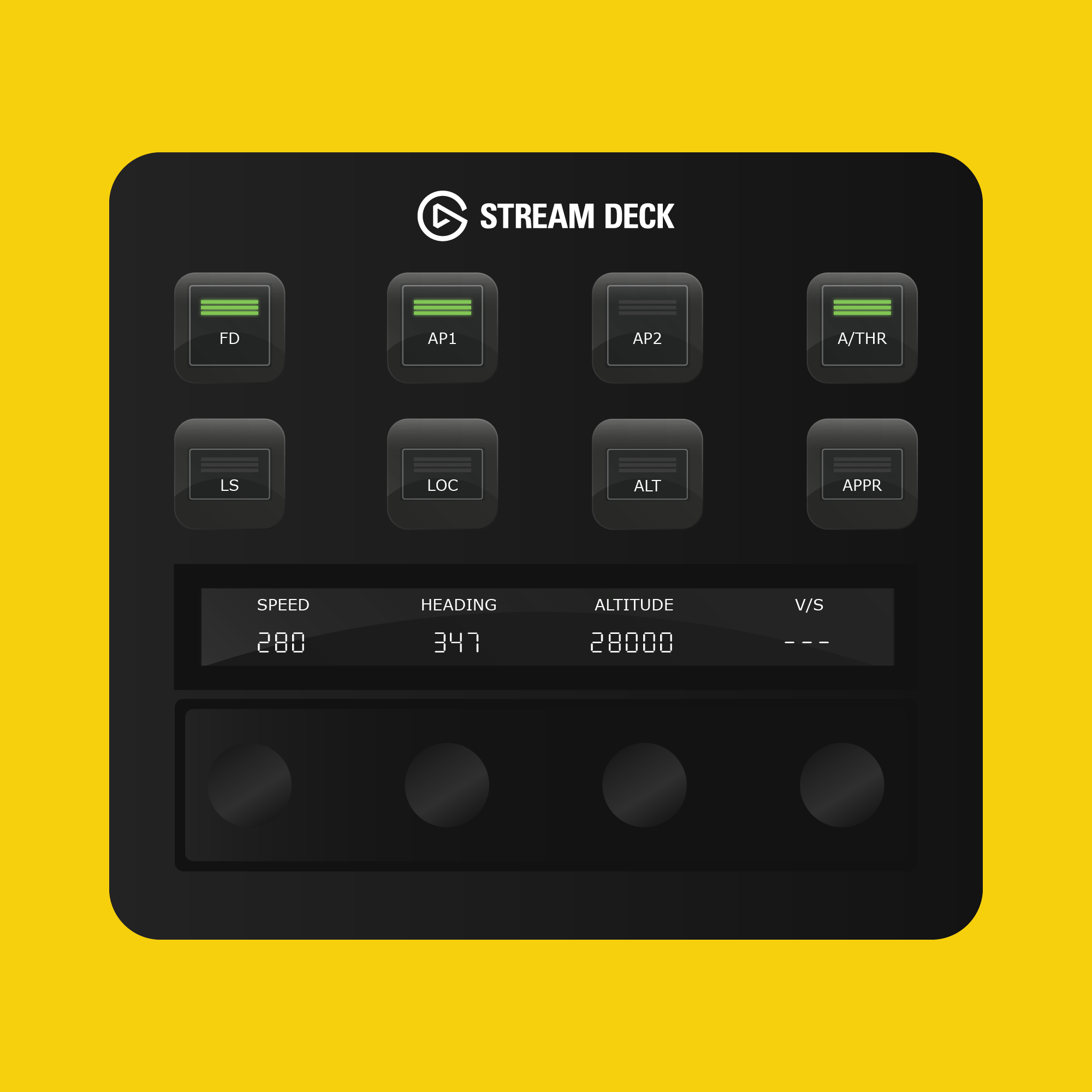 This profile is compatible with Microsoft Flight Simulator 2020 and Flight Simulator 2024. The following Elgato Stream Deck devices (not included) are supported: Stream Deck +.
