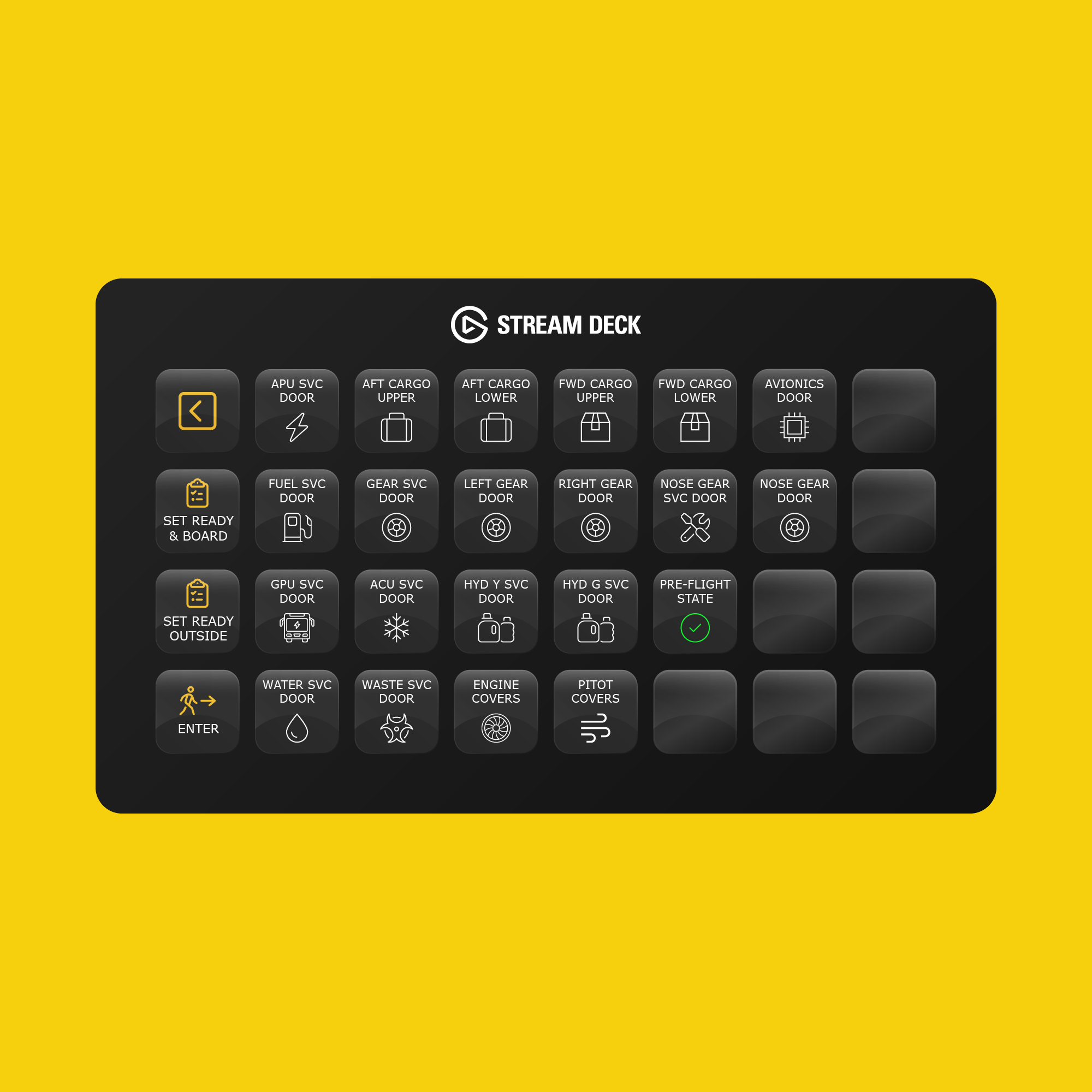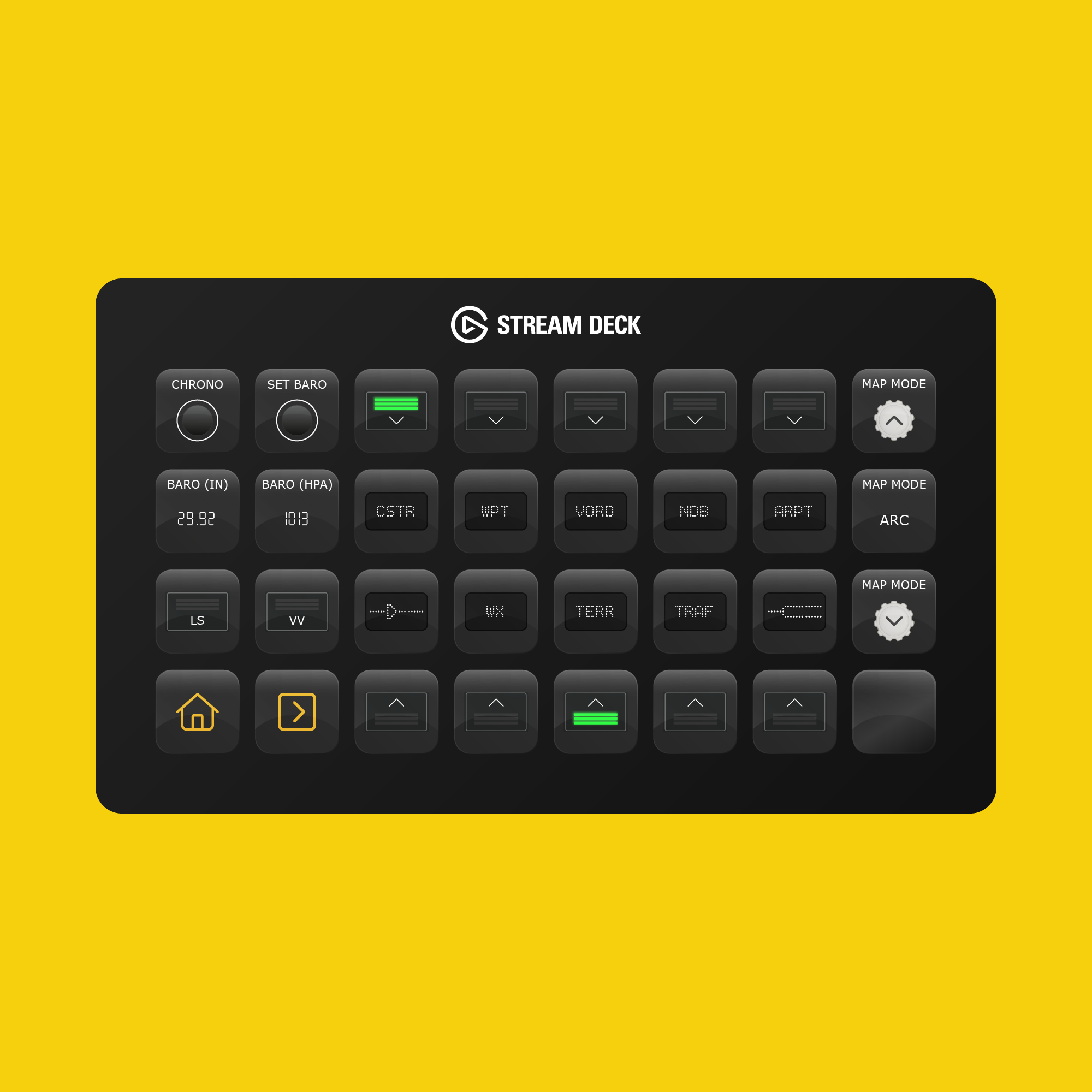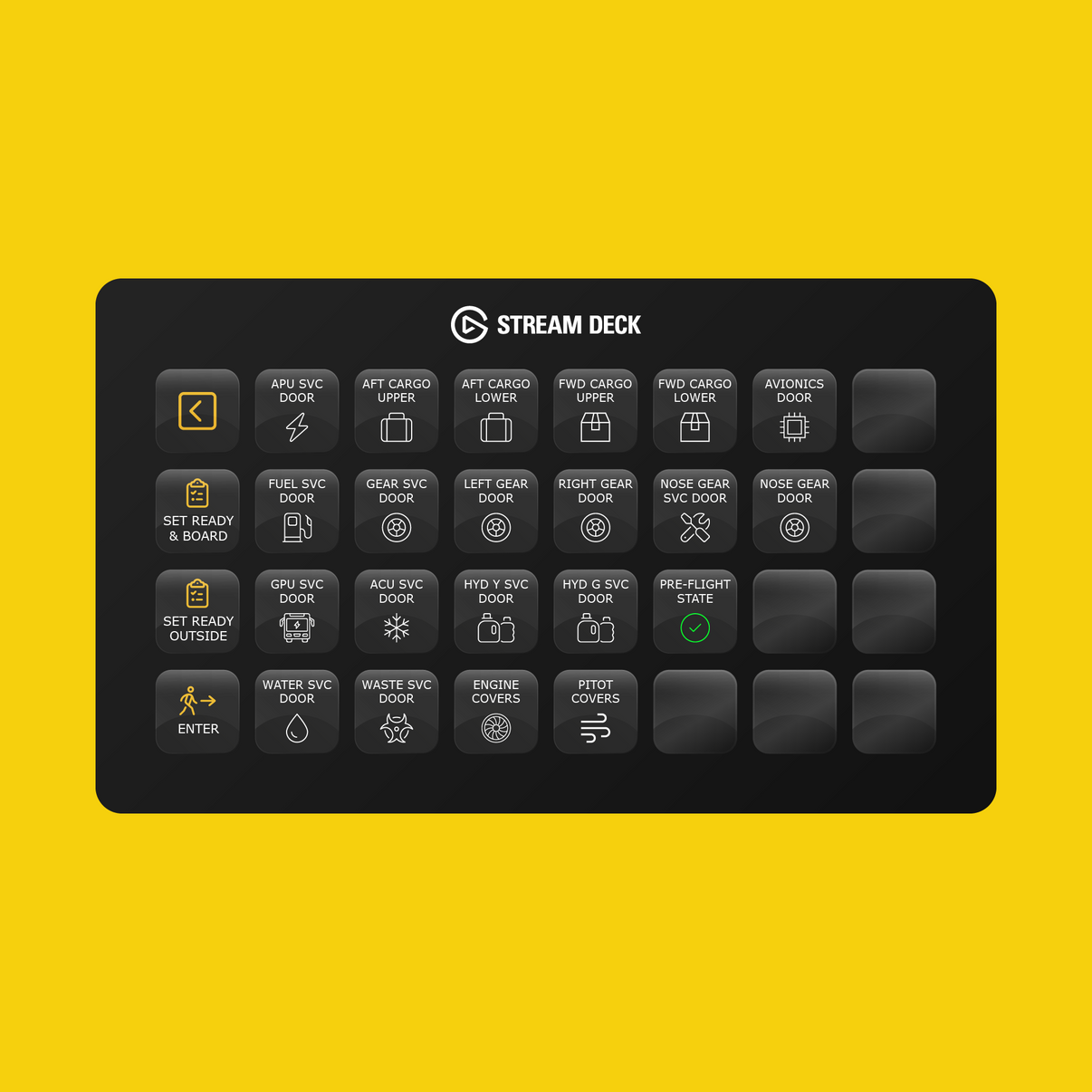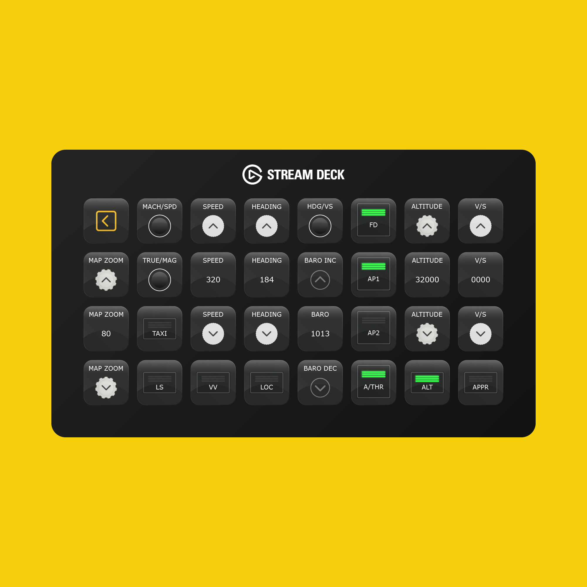 This profile is compatible with Microsoft Flight Simulator 2020 and Flight Simulator 2024. The following Elgato Stream Deck devices (not included) are supported: Stream Deck XL, Stream Deck Mobile, and Stream Deck MK.2.