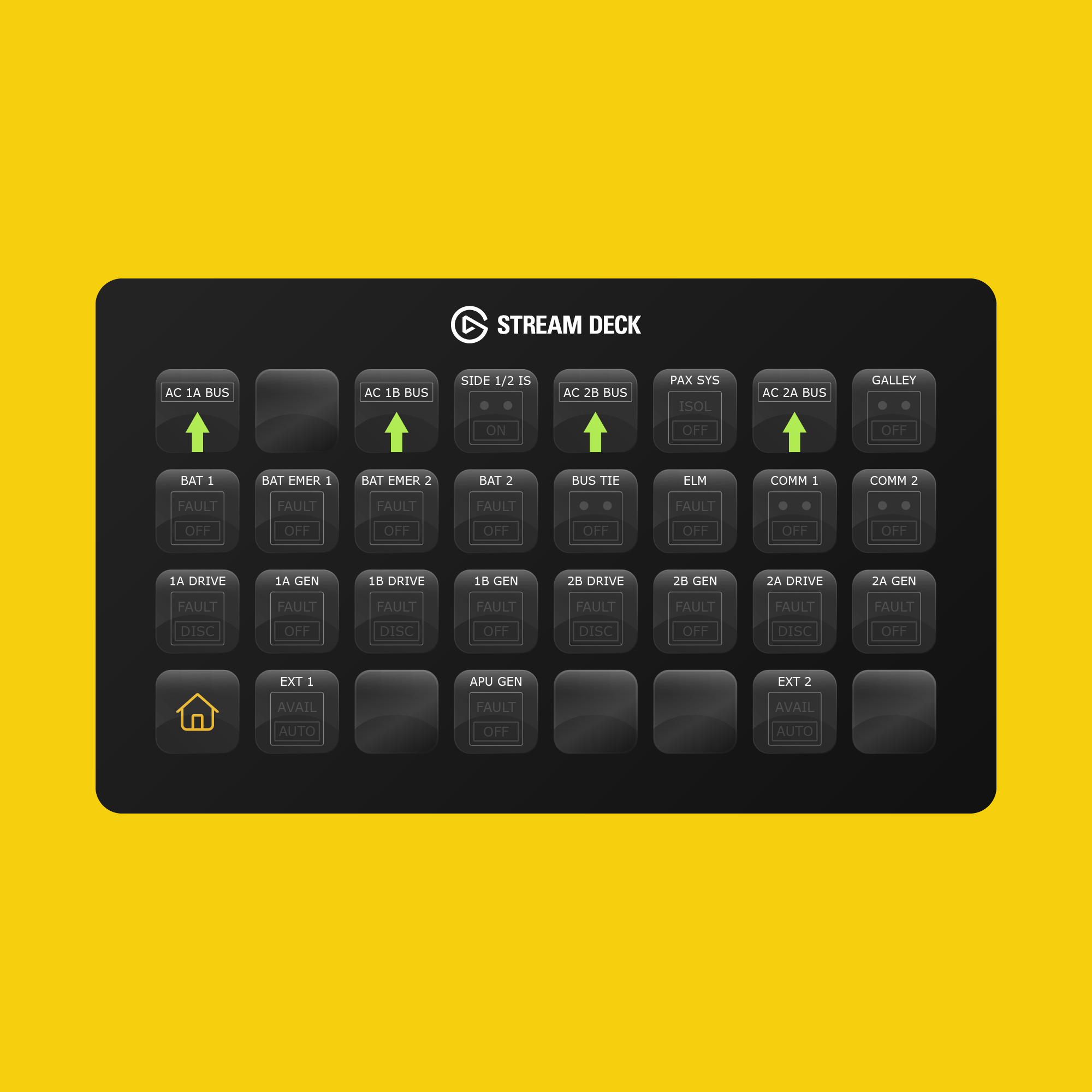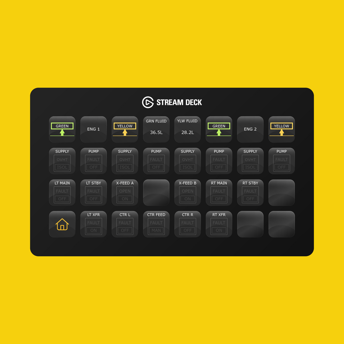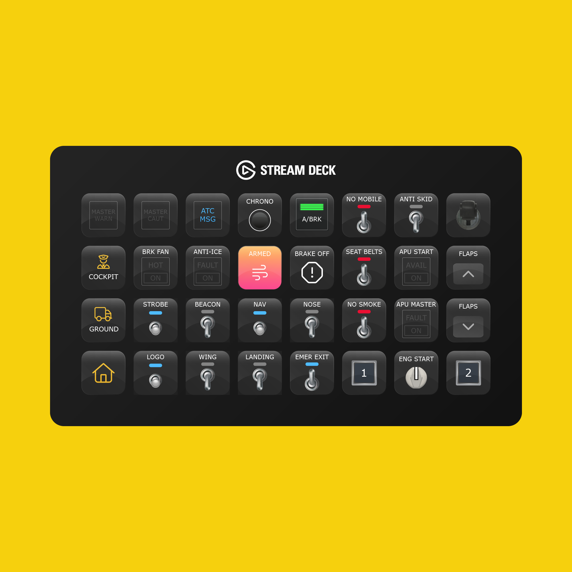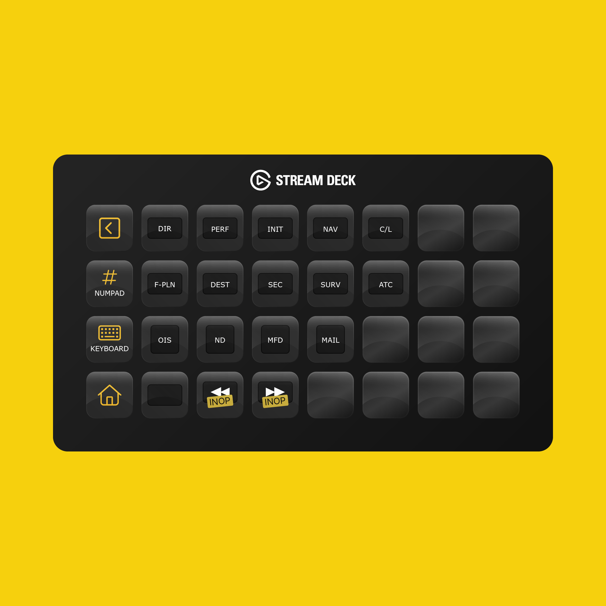 This profile is compatible with Microsoft Flight Simulator 2020 and Flight Simulator 2024. The following Elgato Stream Deck devices (not included) are supported: Stream Deck XL, Stream Deck Mobile, and Stream Deck MK.2.