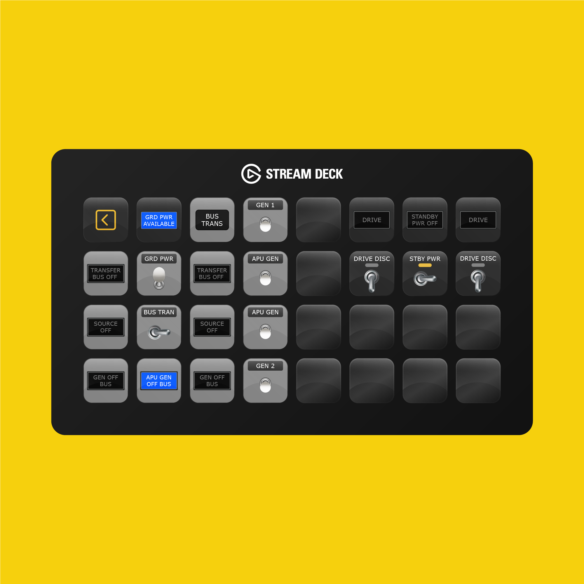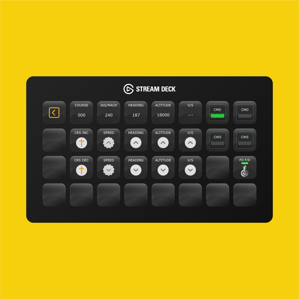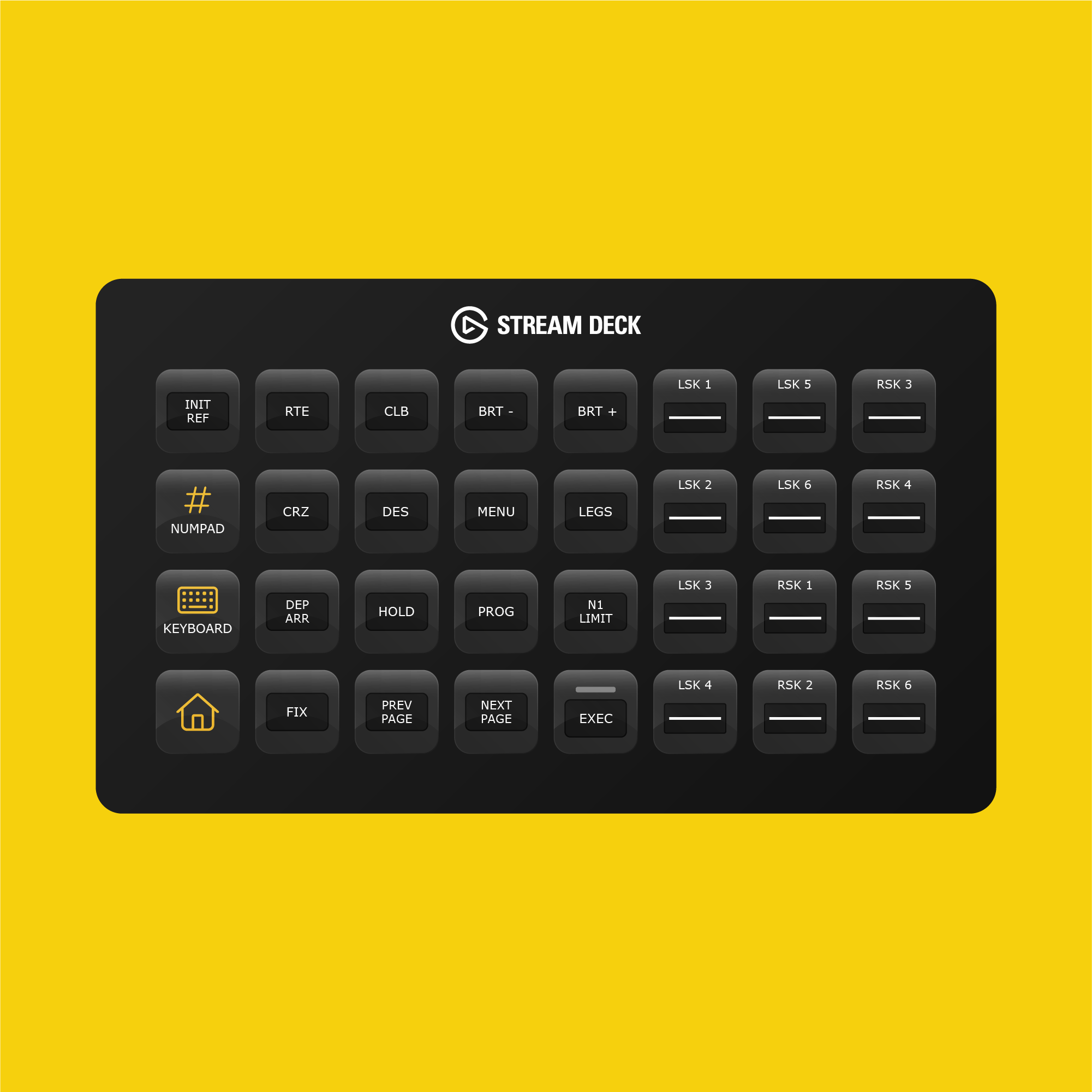 This profile is compatible with X-Plane 11 (Windows) and X-Plane 12 (Windows). The following Elgato Stream Deck devices (not included) are supported: Stream Deck XL, Stream Deck Mobile, Stream Deck MK.2, and Xeneon Edge.