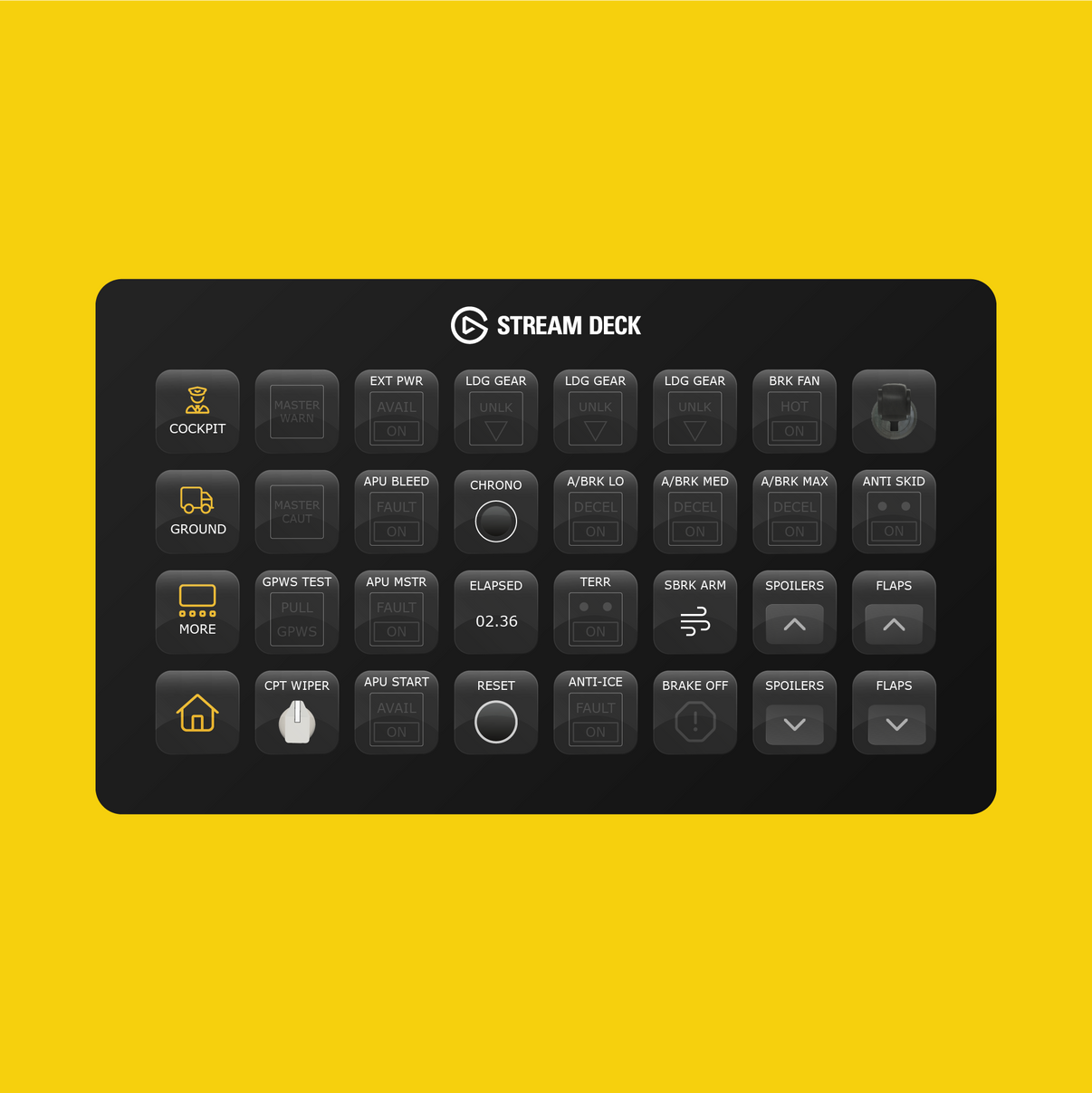 This profile is compatible with Microsoft Flight Simulator 2020 and Flight Simulator 2024. The following Elgato Stream Deck devices (not included) are supported: Stream Deck XL, Stream Deck MK.2, Stream Deck Mobile, and Xeneon Edge.