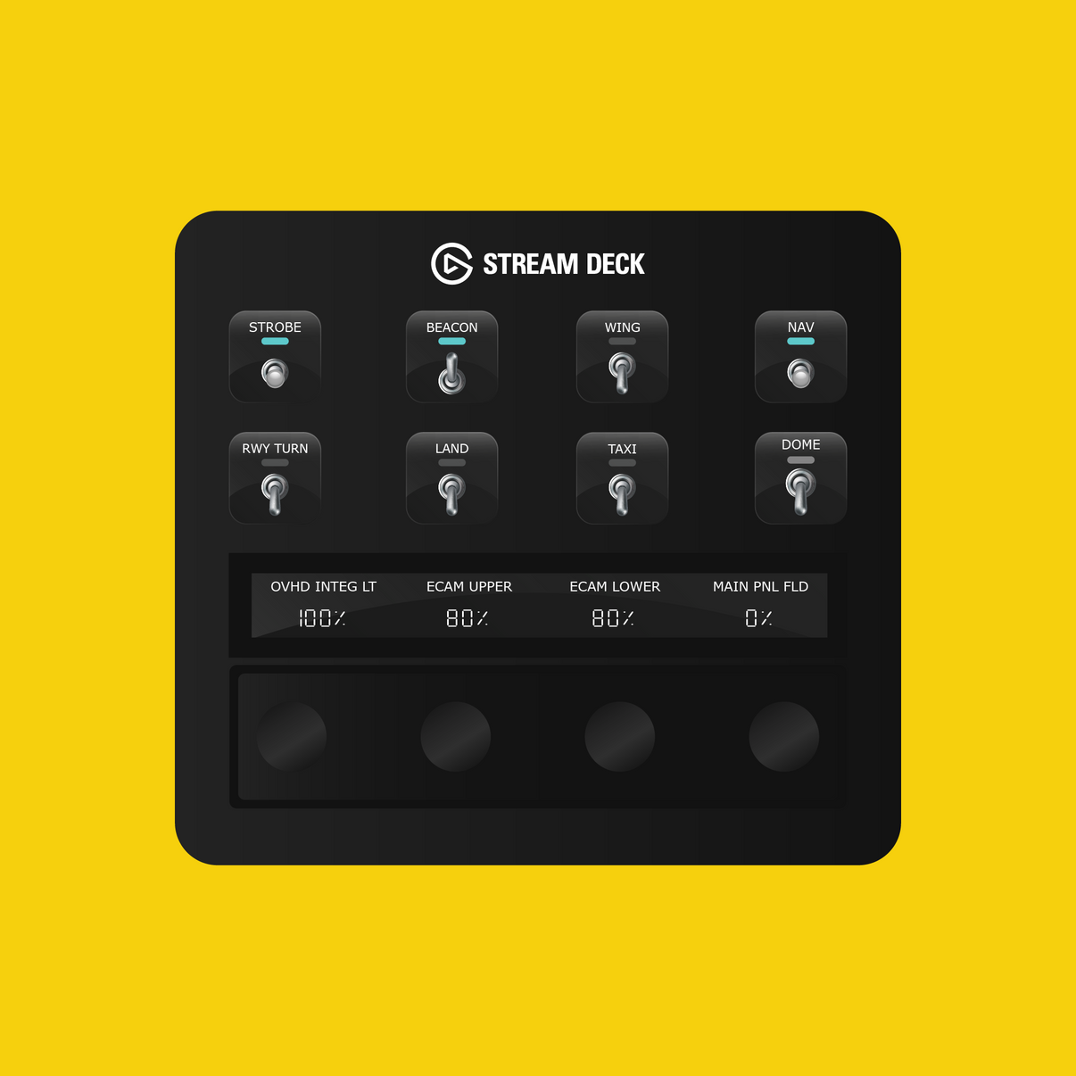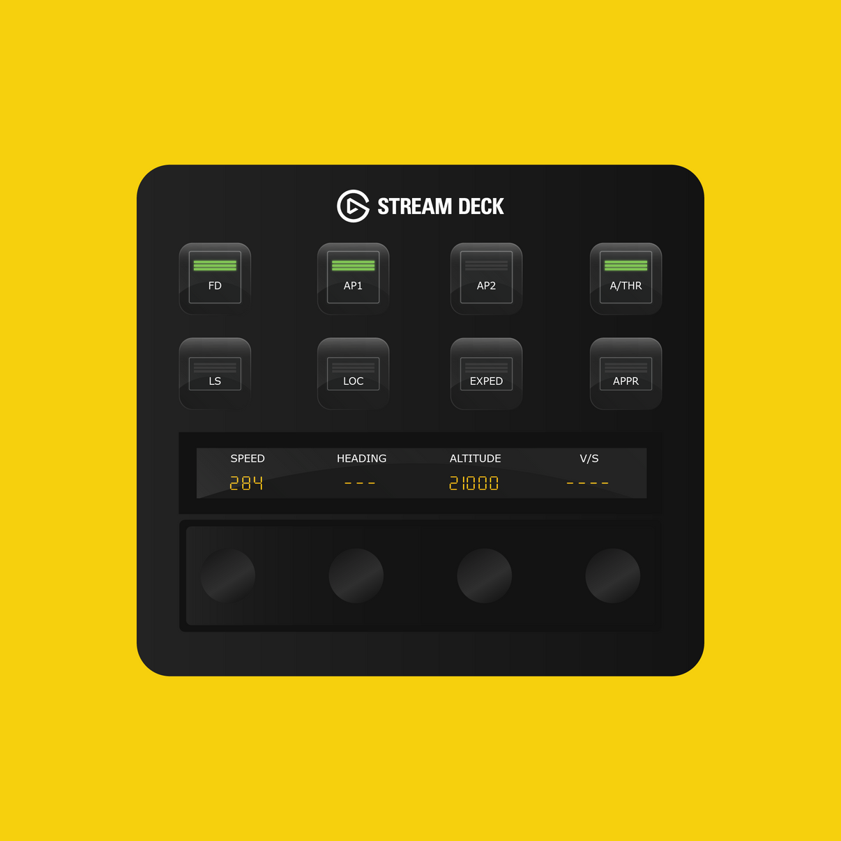 This profile is compatible with Microsoft Flight Simulator 2020 and Flight Simulator 2024. The following Elgato Stream Deck devices (not included) are supported: Stream Deck +.