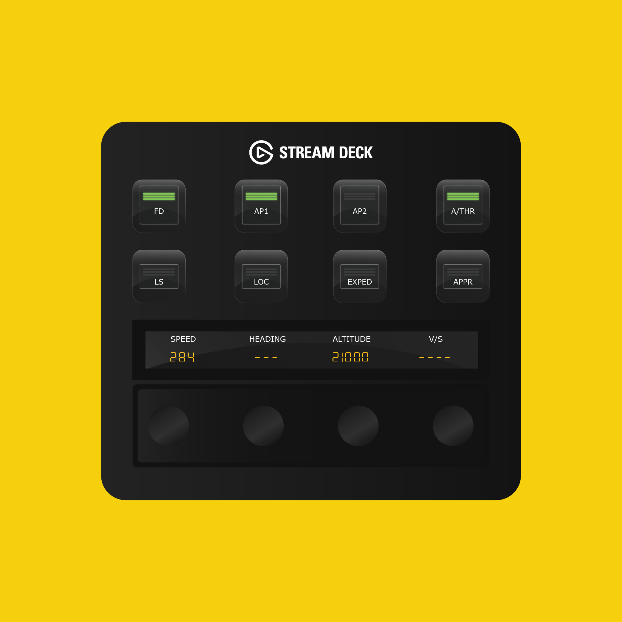 With the Flight Panels Autopilot Panel for the Flight Sim Labs (FSLabs) Airbus A321Neo you can manage your aircraft's autopilot systems using the physical buttons, LCD touchscreen and rotary dials on your Stream Deck Plus (+) to create a truly immersive experience.