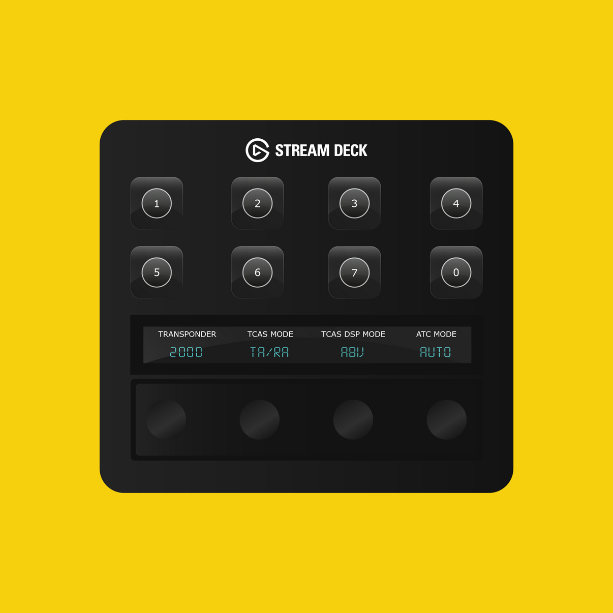 Button Controls: Enter the transponder code by selecting 4 of the available keys. The transponder code will update on the LCD screen and in-cockpit once the 4th digit has been entered. Rotary Dials & LCD Screen: TCAS mode, TCAS display mode and ATC mode. Rotate the rotary dials left or right to cycle through the available options.