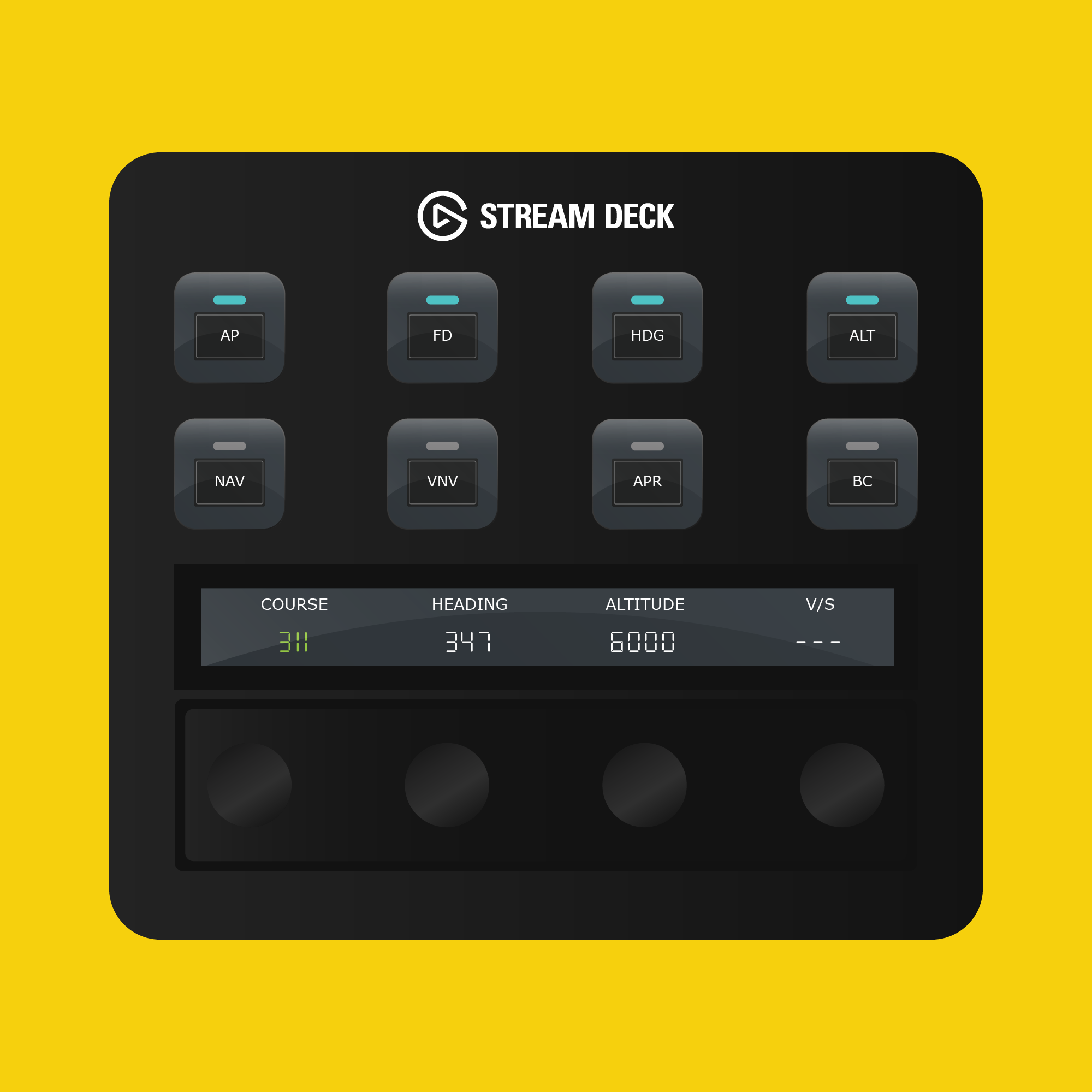 With the Flight Panels Autopilot Panel for the Cessna 172 Skyhawk (G1000) and X-Plane 11/12, you can manage your aircraft's autopilot systems using the physical buttons, LCD touchscreen and rotary dials on your Stream Deck Plus (+) to create a truly immersive experience.