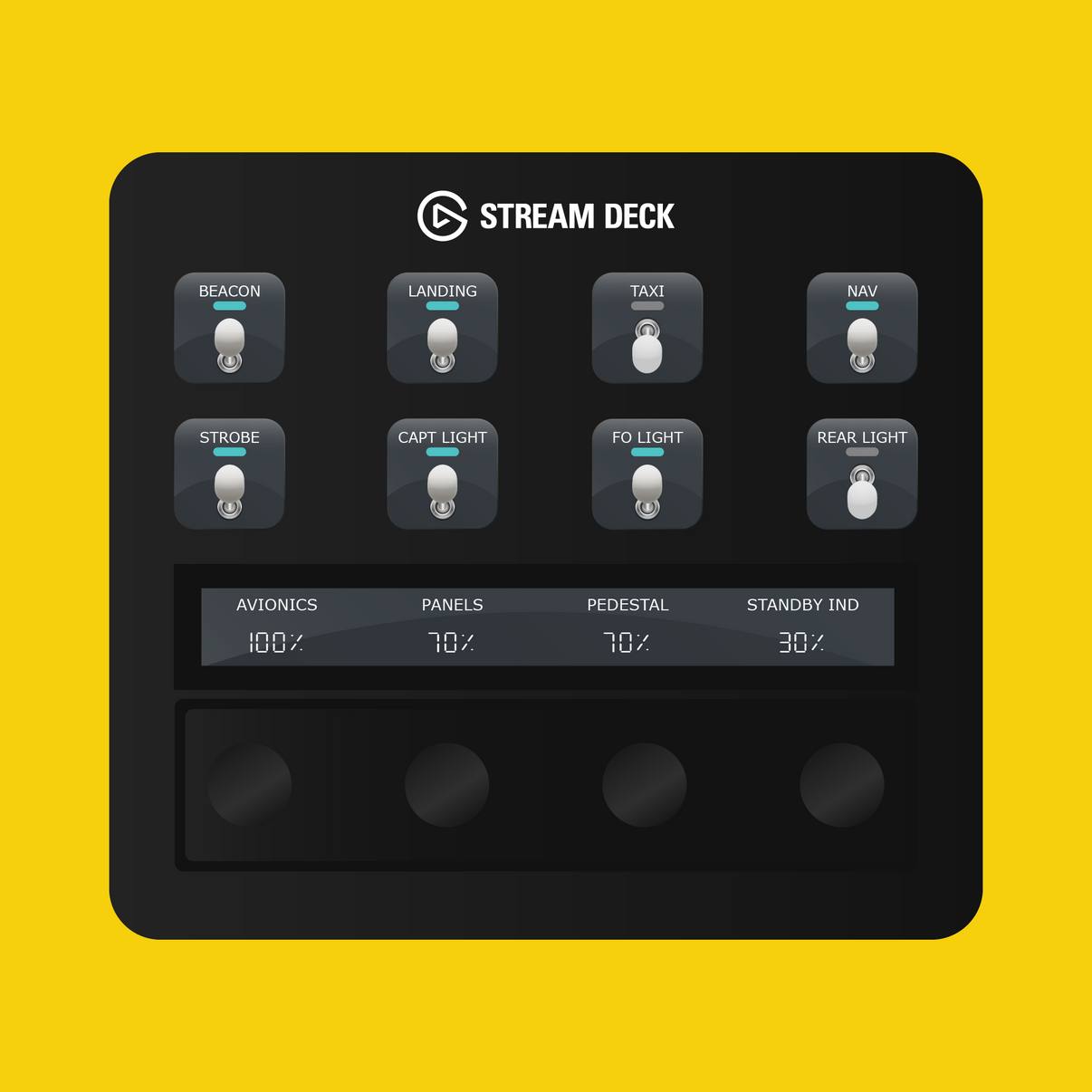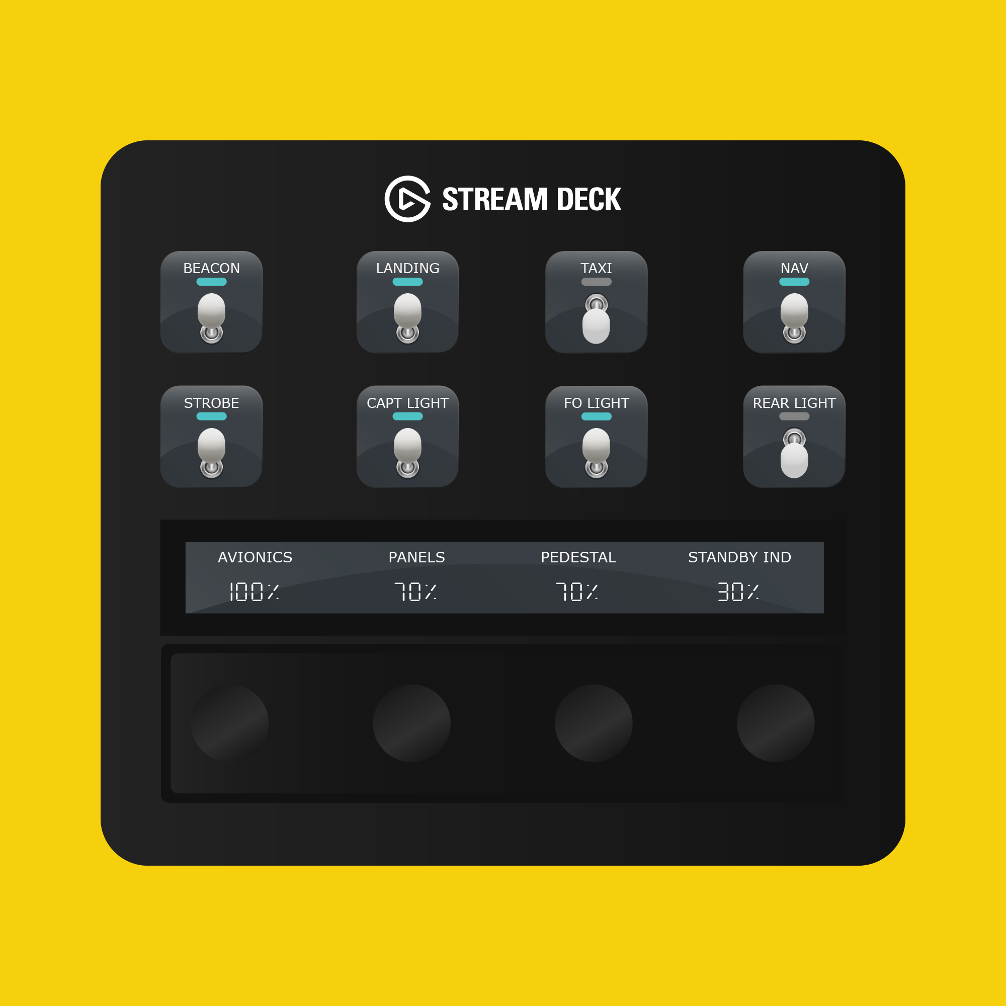 This profile is compatible with X-Plane 11 (Windows) and X-Plane 12 (Windows). The following Elgato Stream Deck devices (not included) are supported: Stream Deck +.