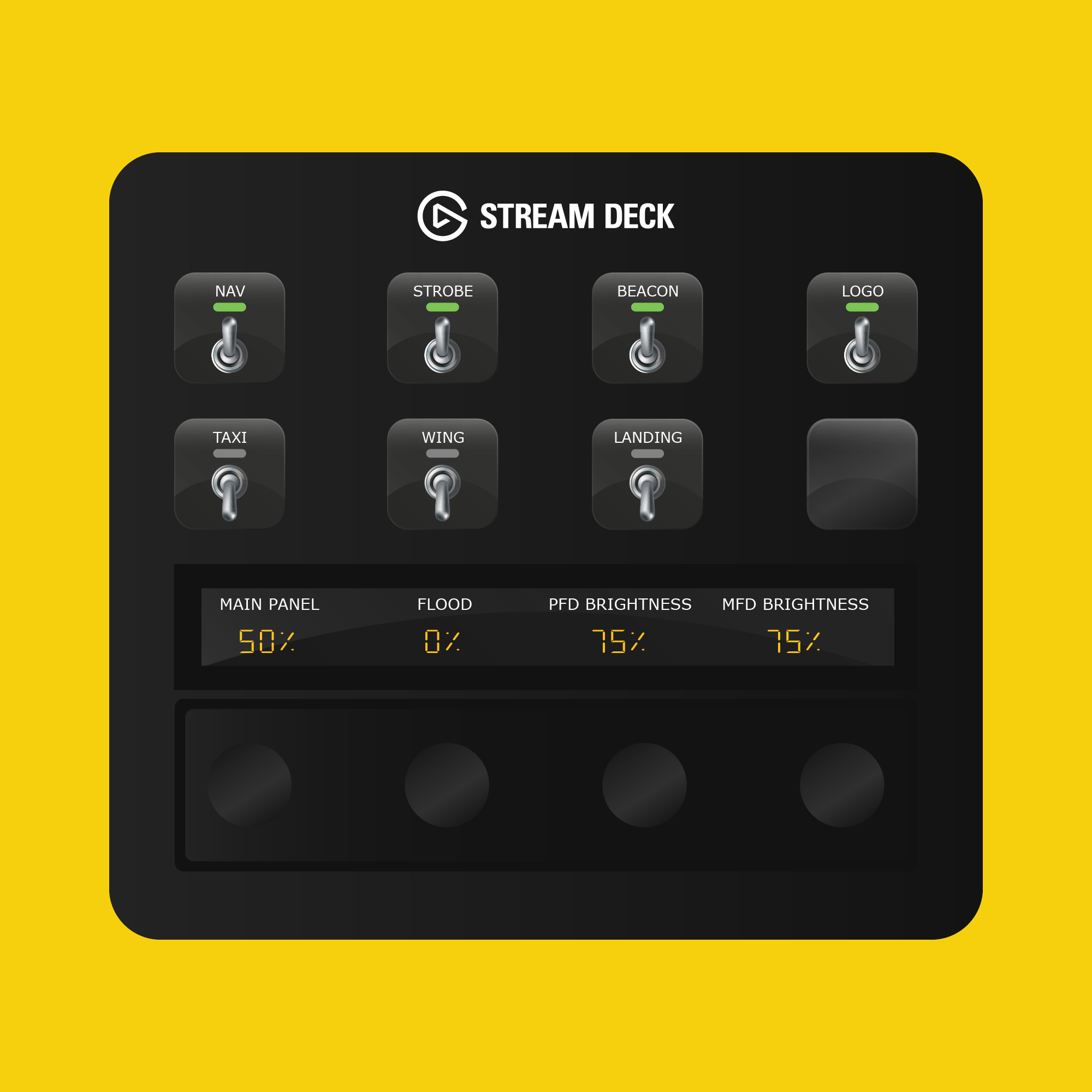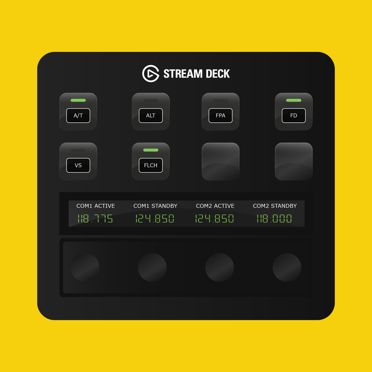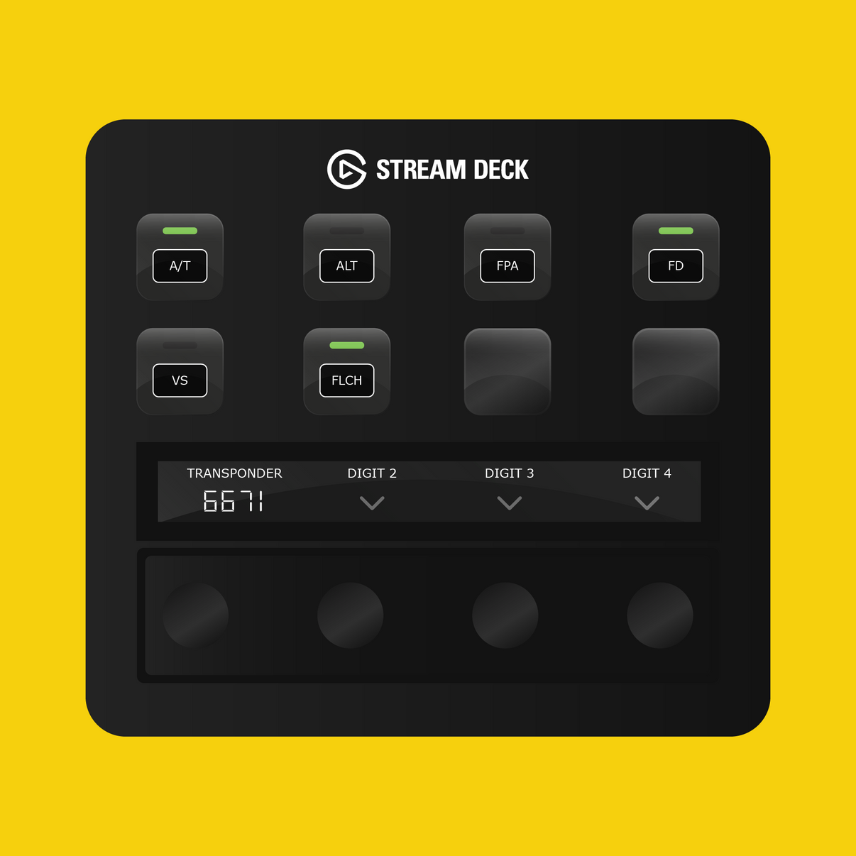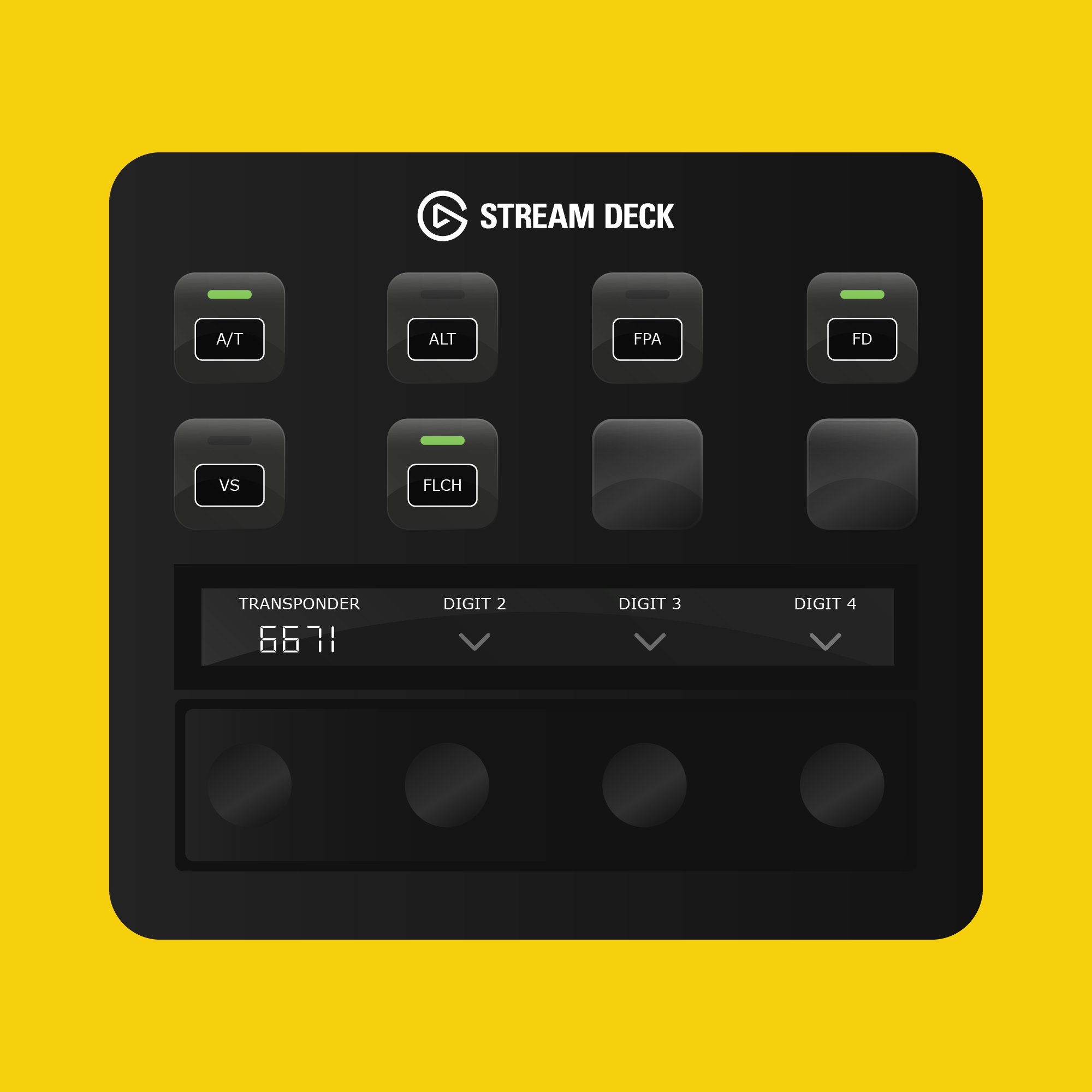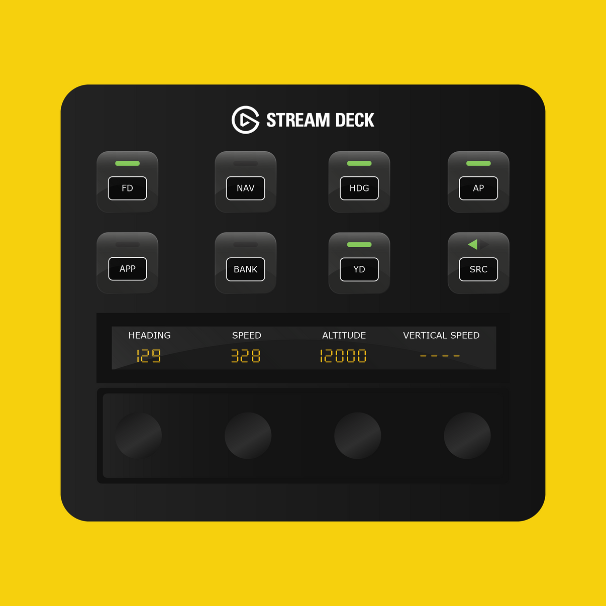 This profile is compatible with Microsoft Flight Simulator 2020 and Flight Simulator 2024. The following Elgato Stream Deck devices (not included) are supported: Stream Deck +.