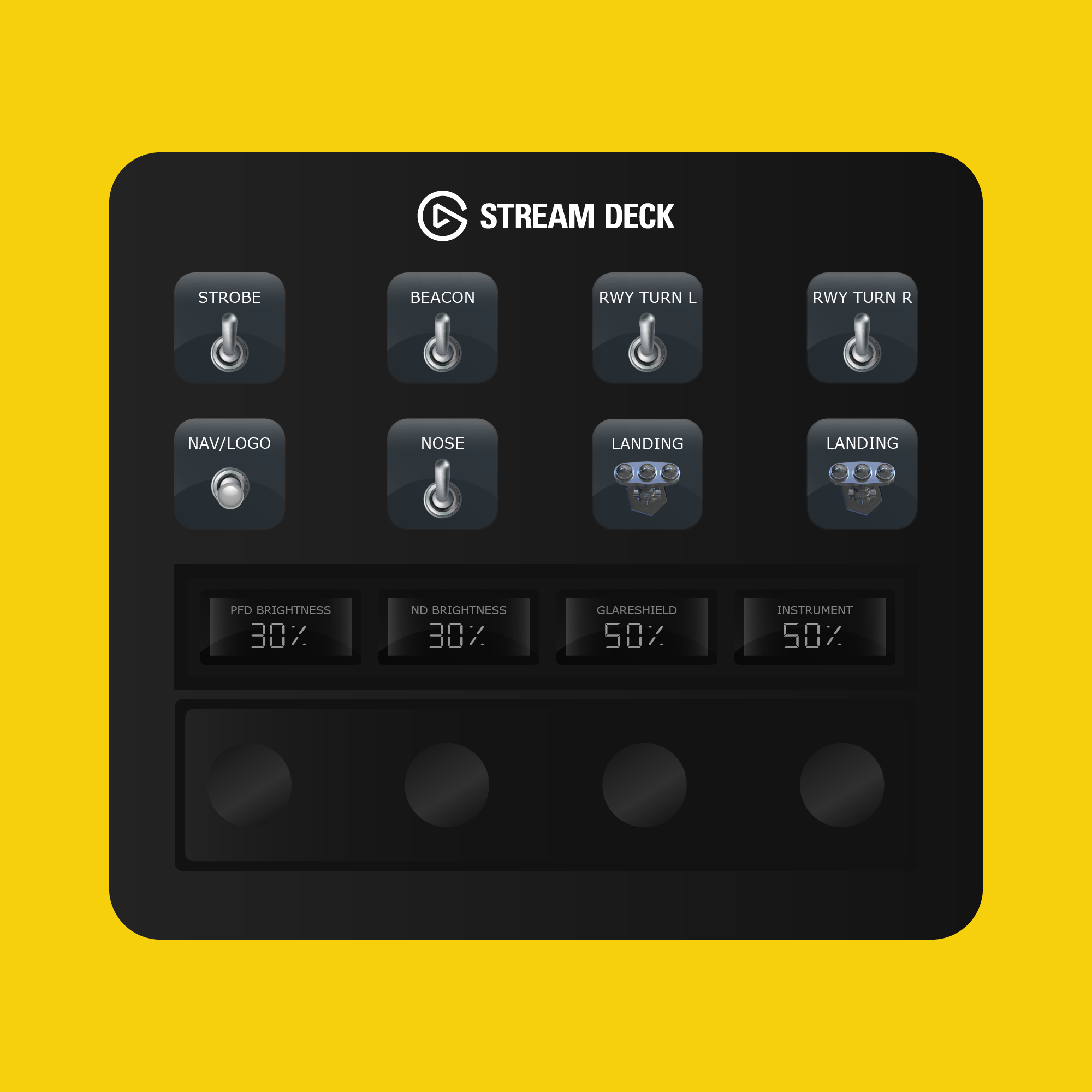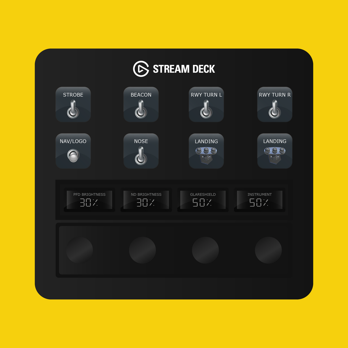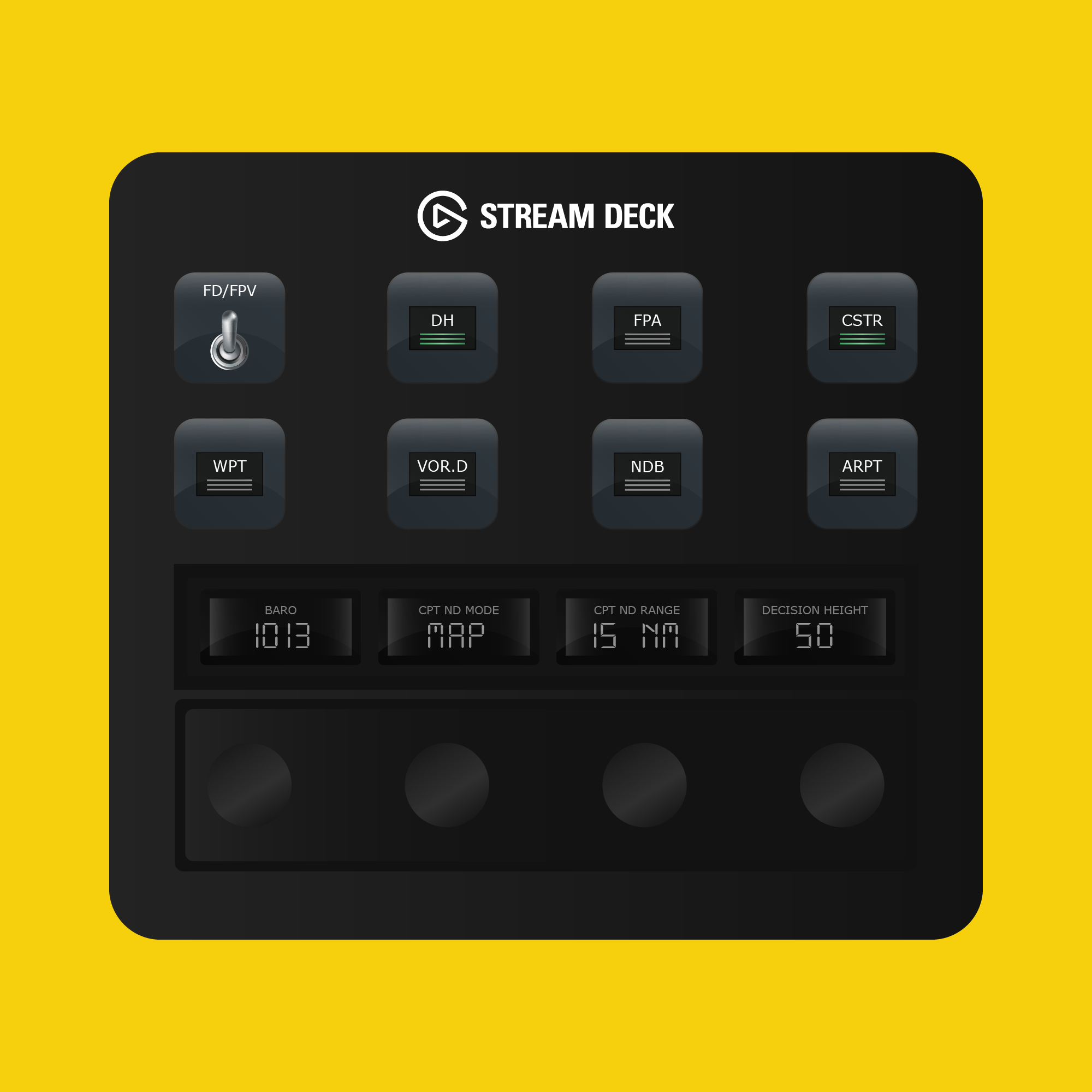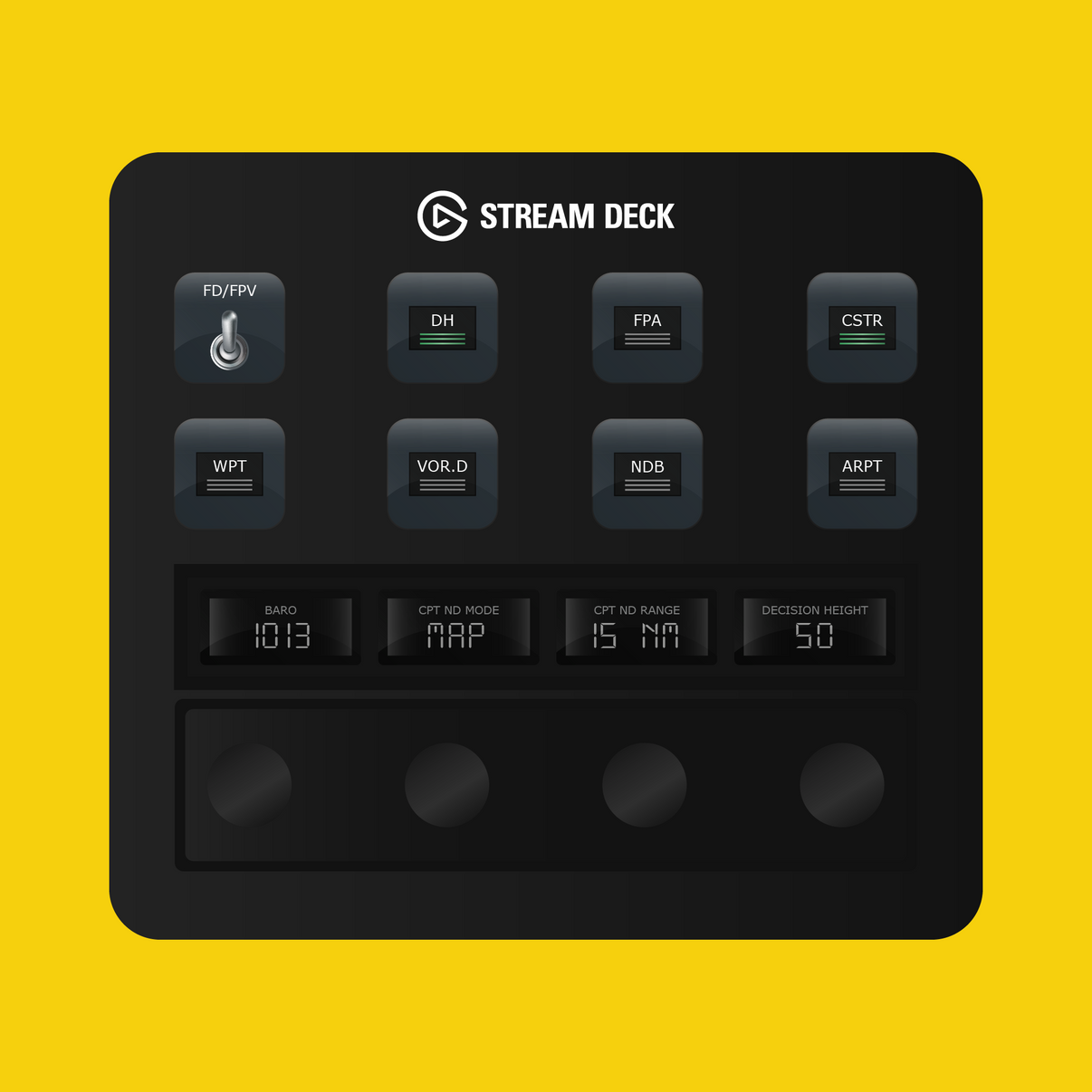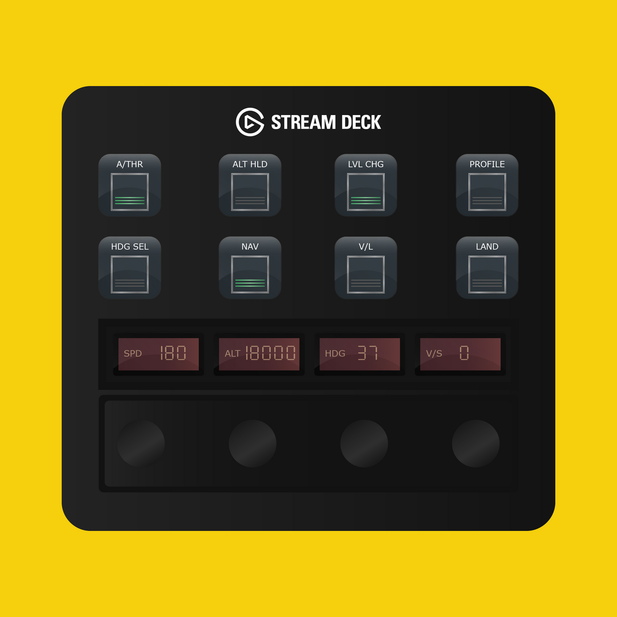 This profile is compatible with Microsoft Flight Simulator 2020 and Flight Simulator 2024. The following Elgato Stream Deck devices (not included) are supported: Stream Deck +.
