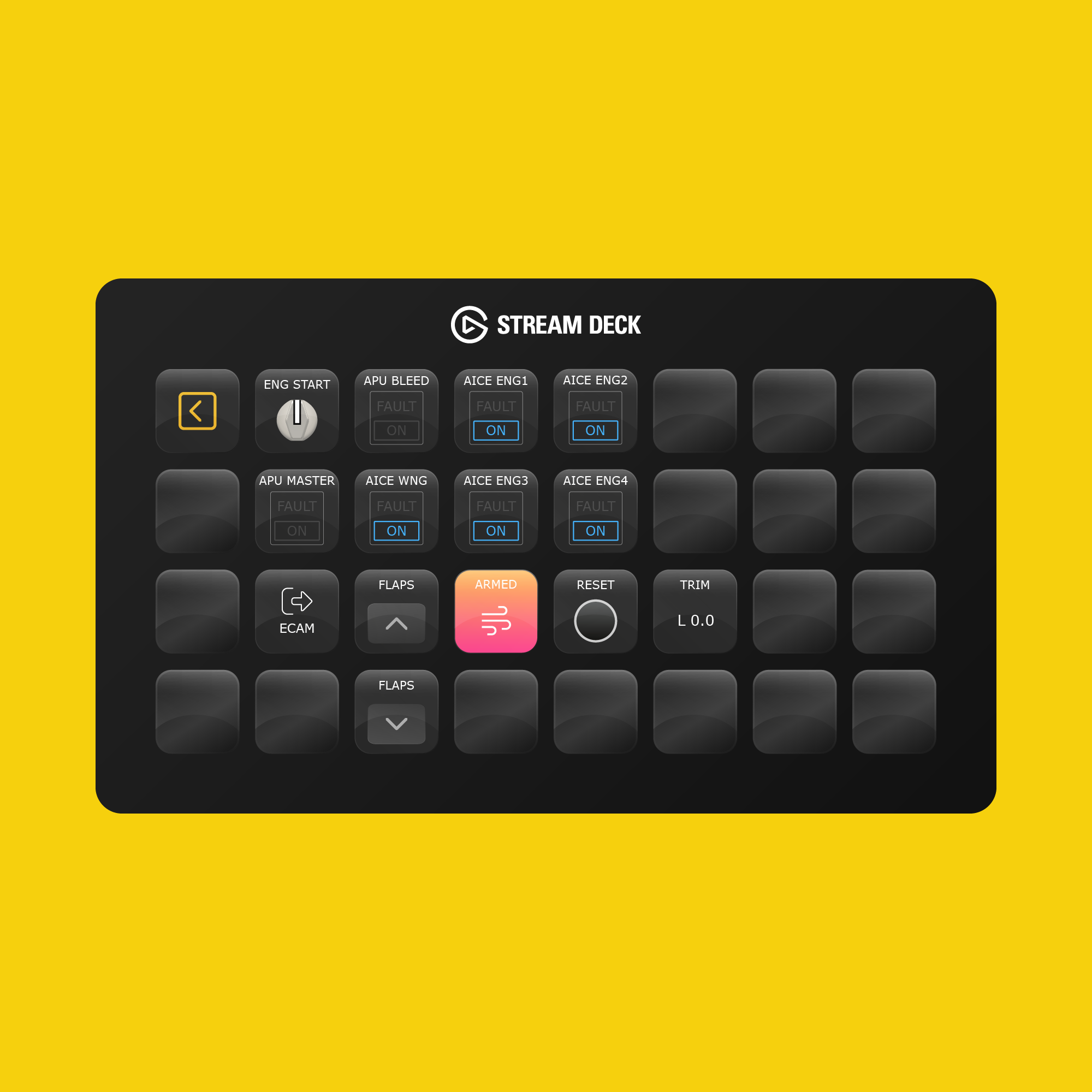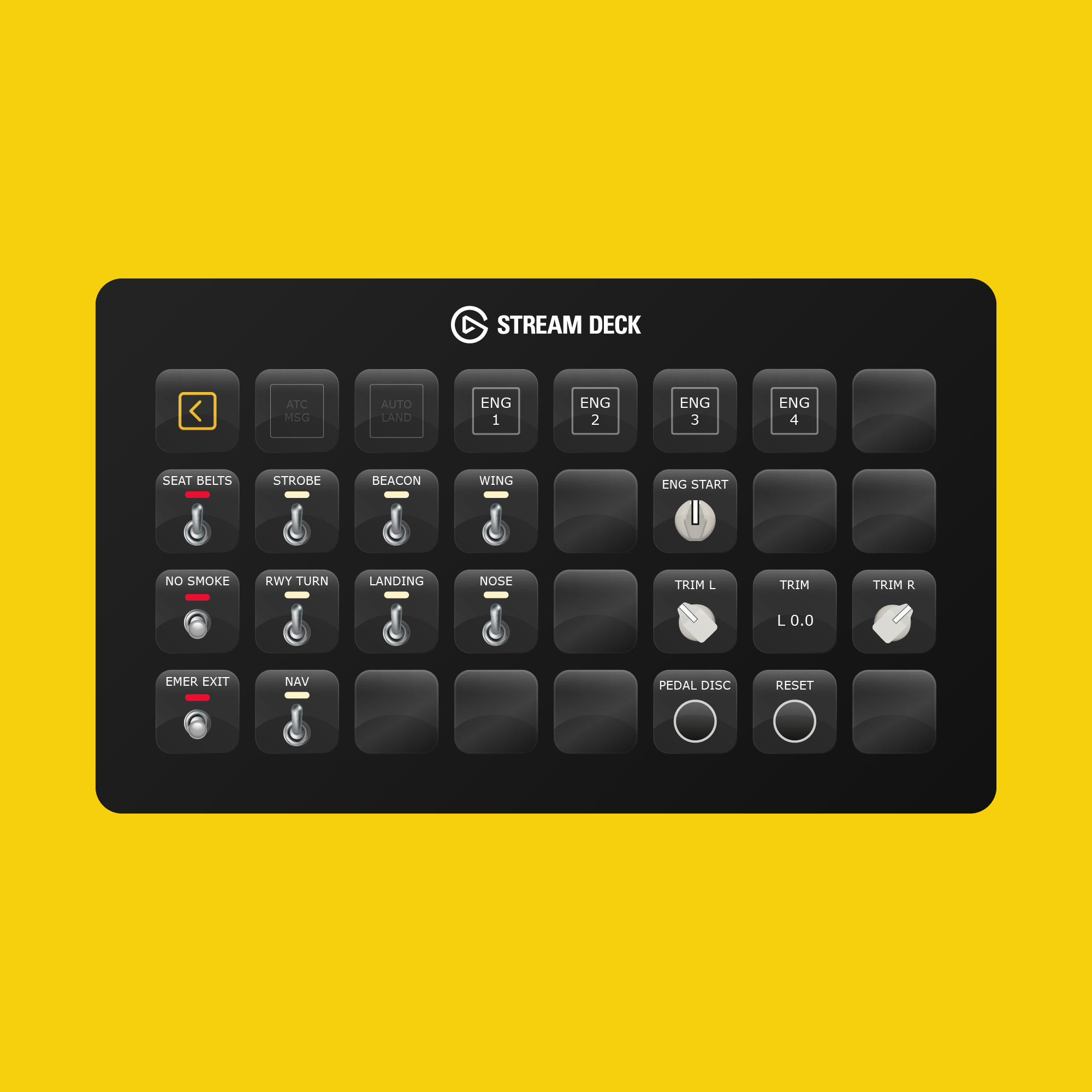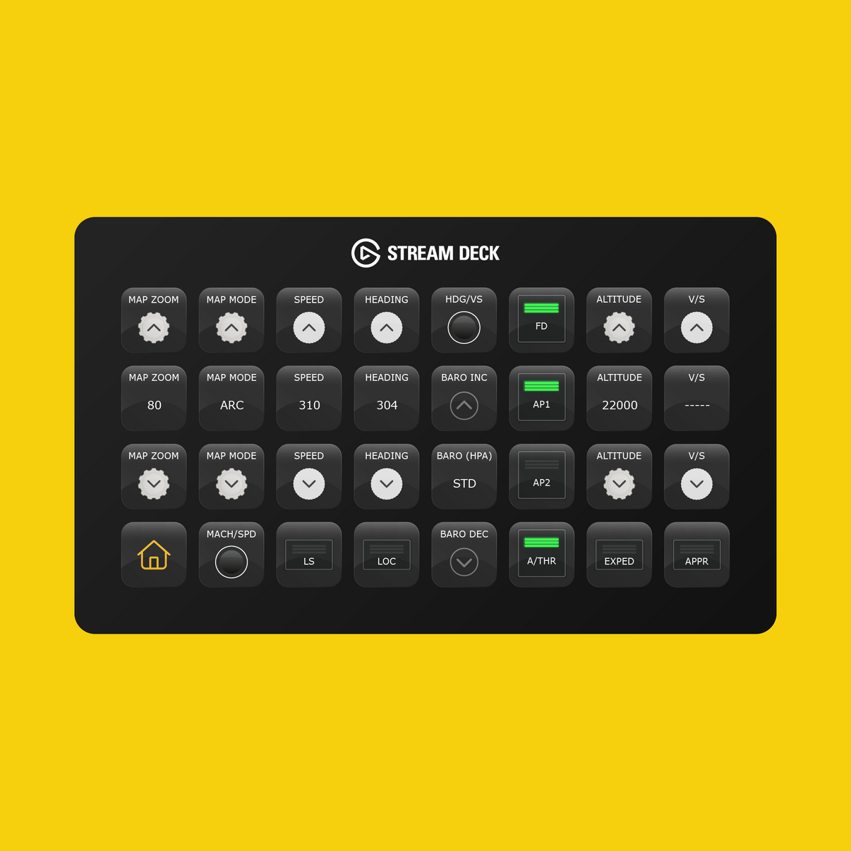 This profile is compatible with Microsoft Flight Simulator 2024. The following Elgato Stream Deck devices (not included) are supported: Stream Deck XL, Stream Deck Mobile, Stream Deck MK.2, and Xeneon Edge.