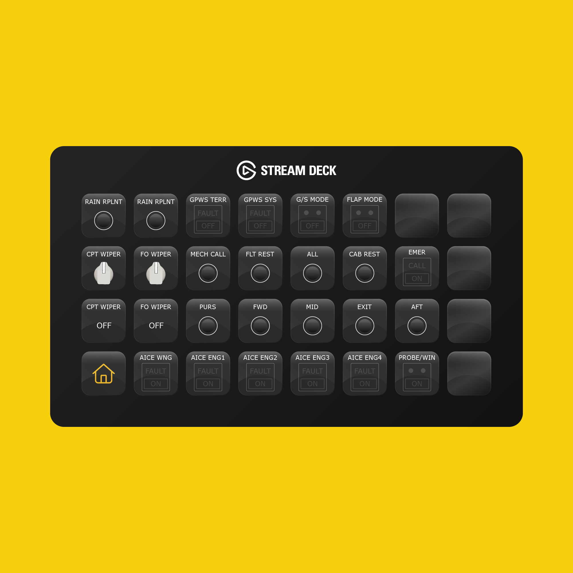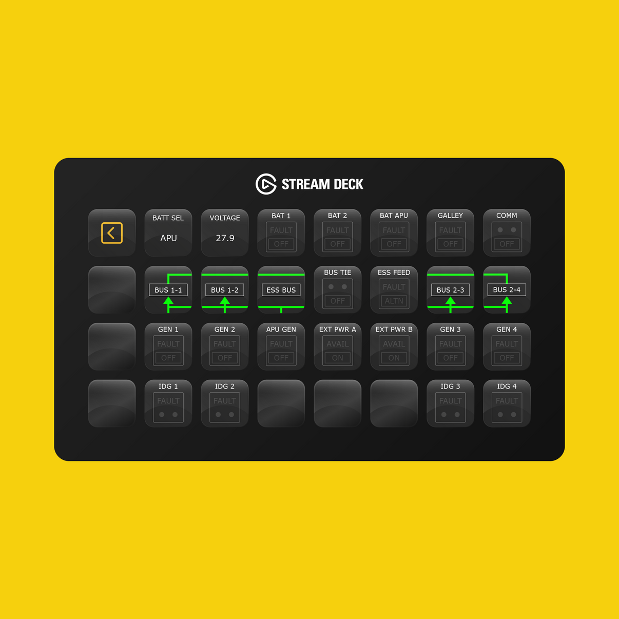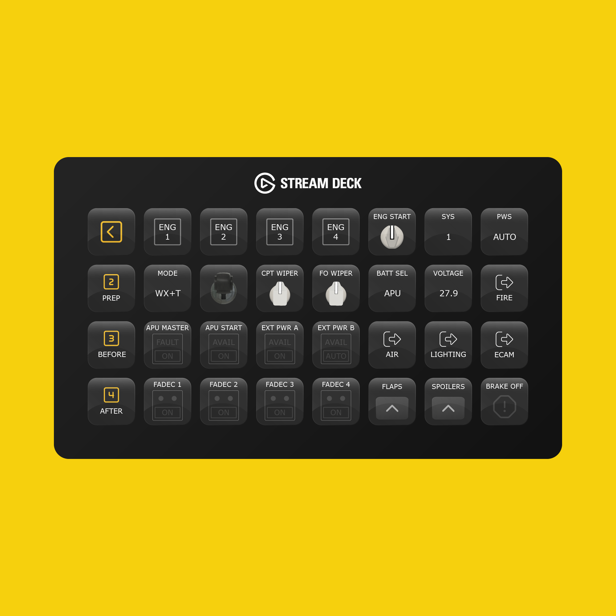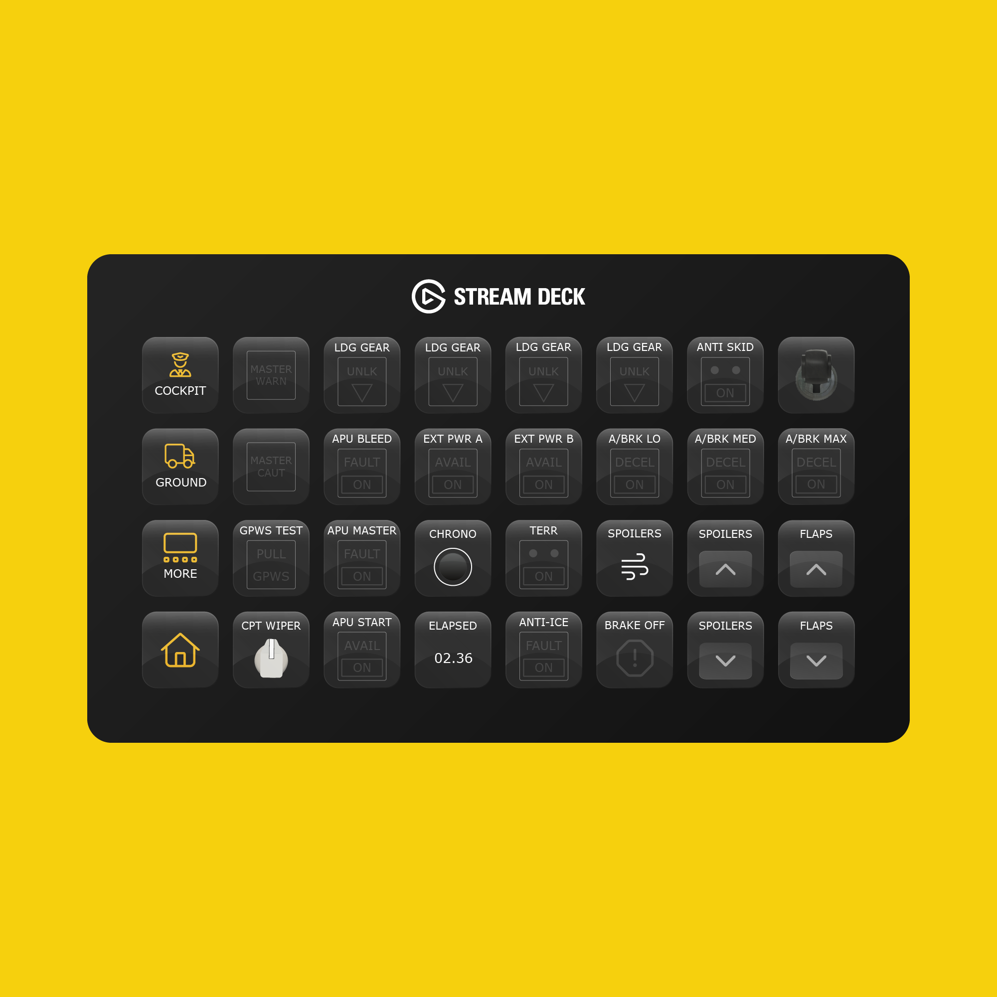 This profile is compatible with Microsoft Flight Simulator 2024. The following Elgato Stream Deck devices (not included) are supported: Stream Deck XL, Stream Deck Mobile, Stream Deck MK.2, and Xeneon Edge.