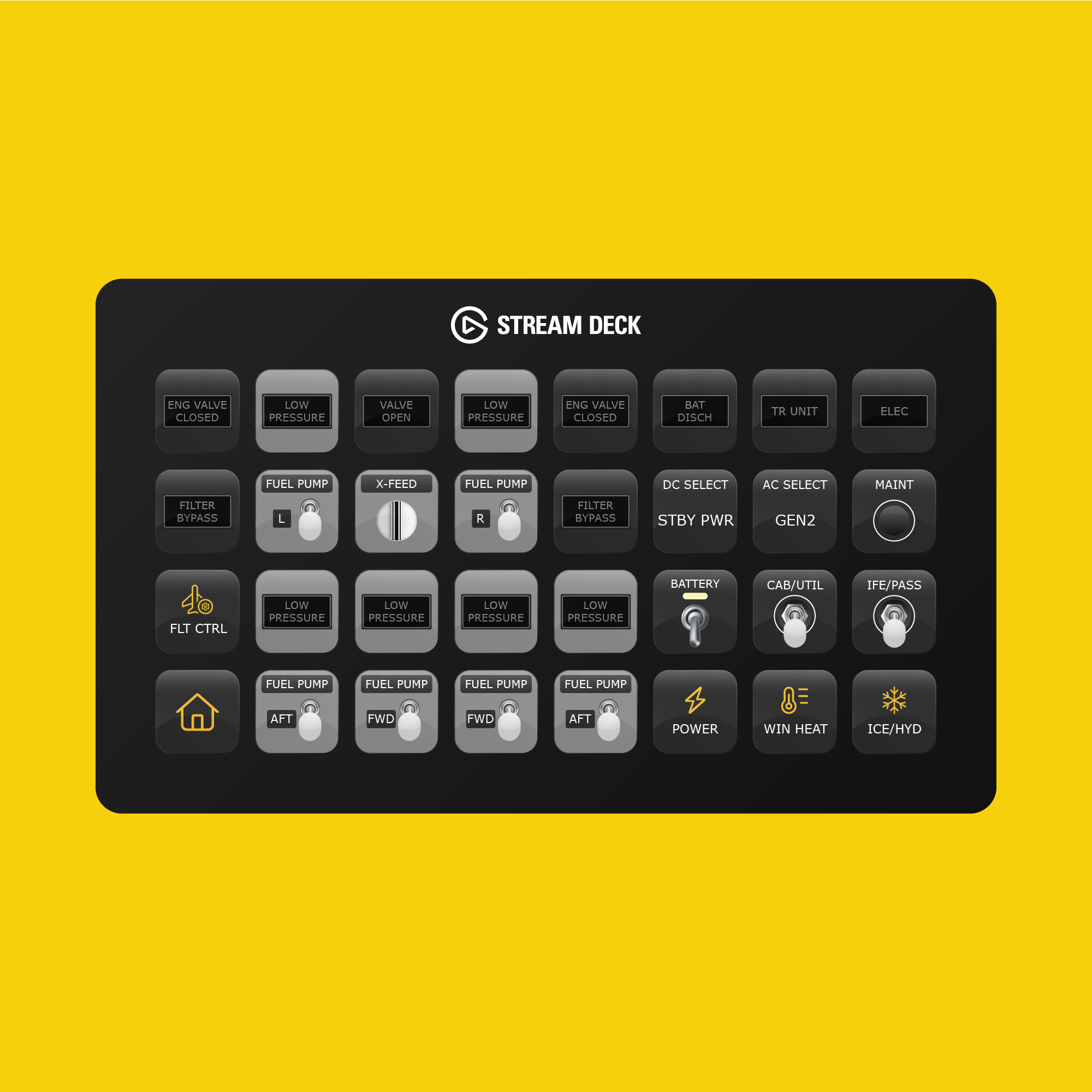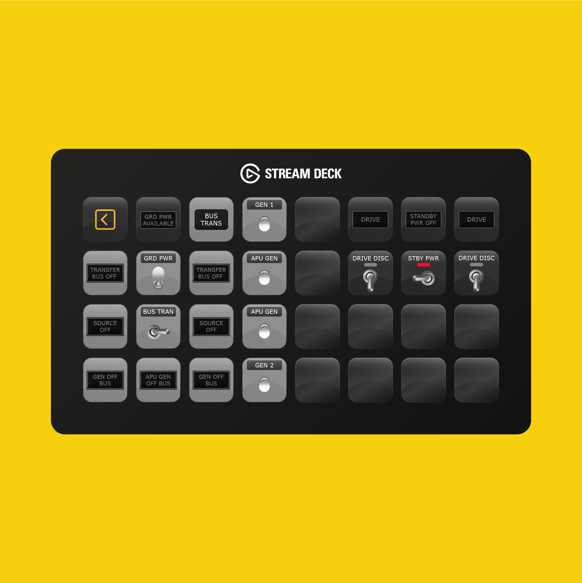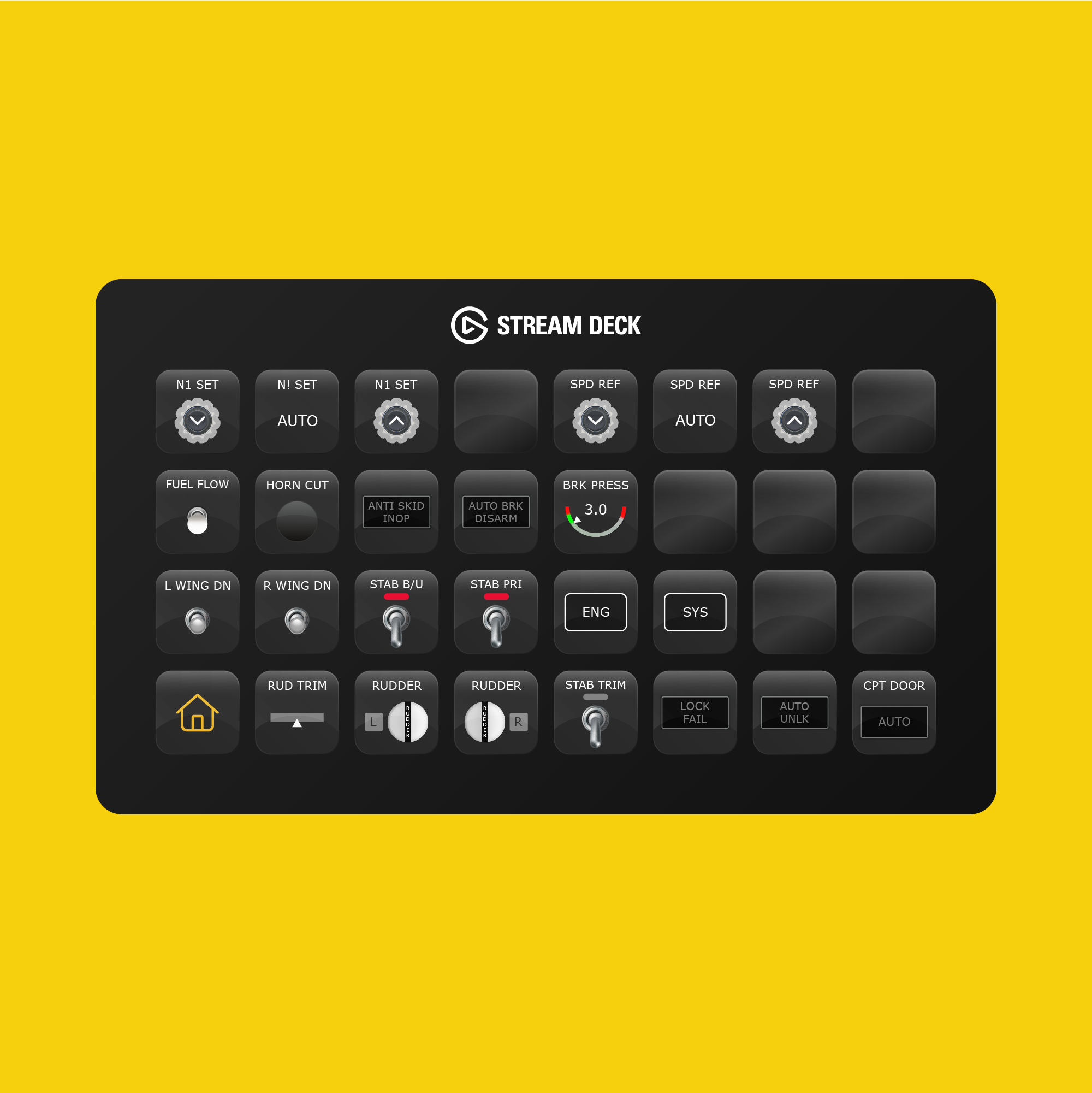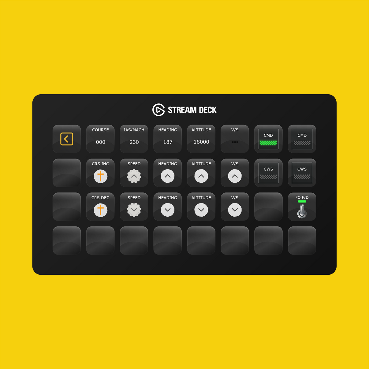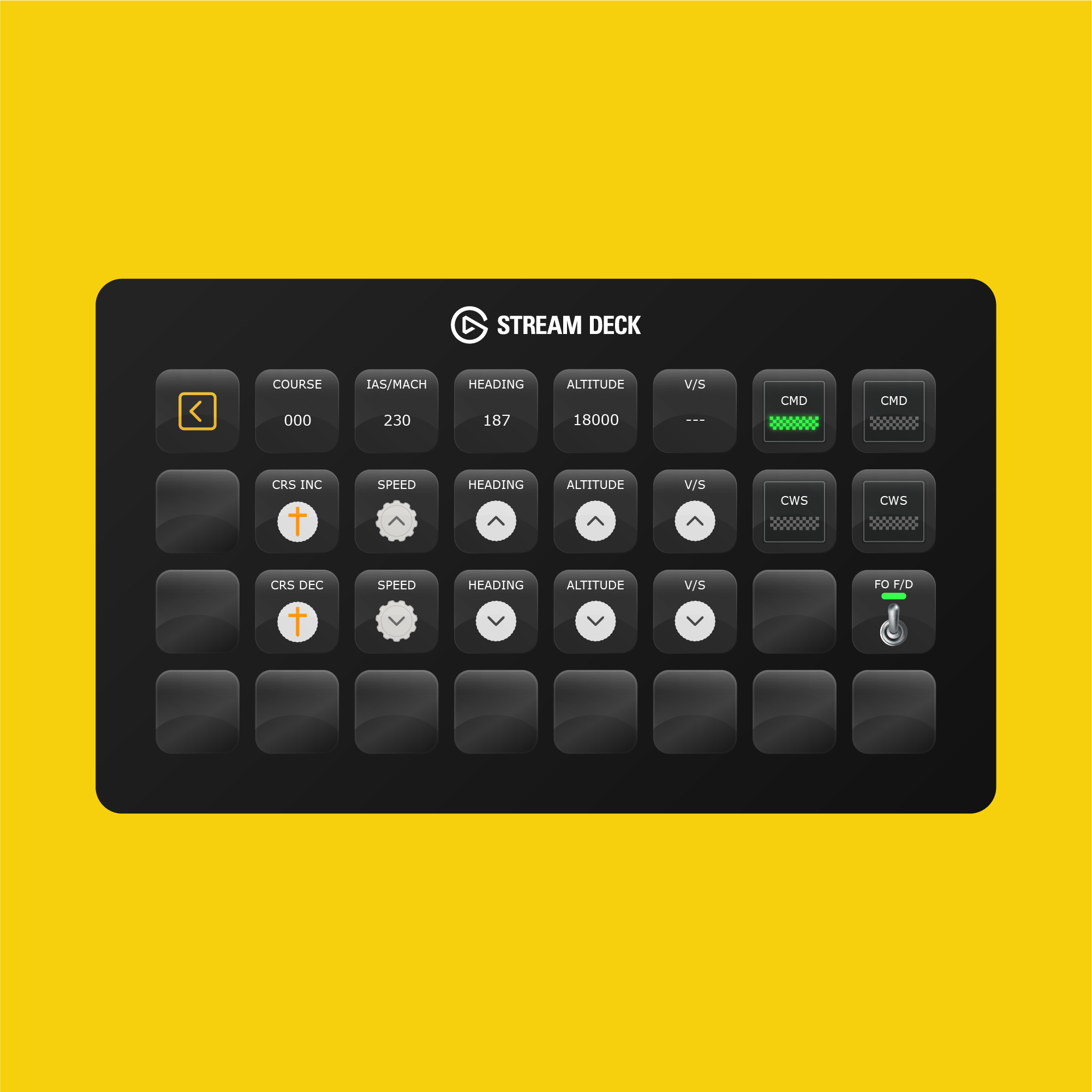 This profile is compatible with Microsoft Flight Simulator 2020 and Microsoft Flight Simulator 2024. The following Elgato Stream Deck devices (not included) are supported: Stream Deck XL, Stream Deck MK.2, Stream Deck Mobile, and Xeneon Edge.